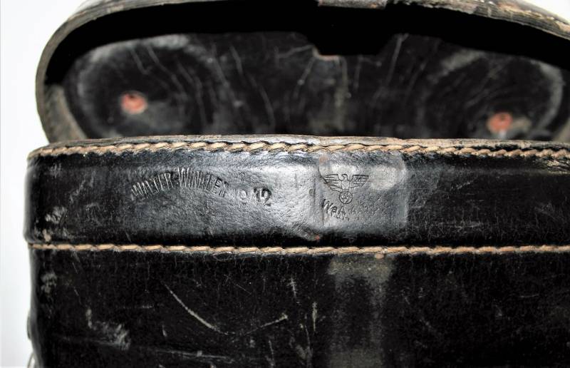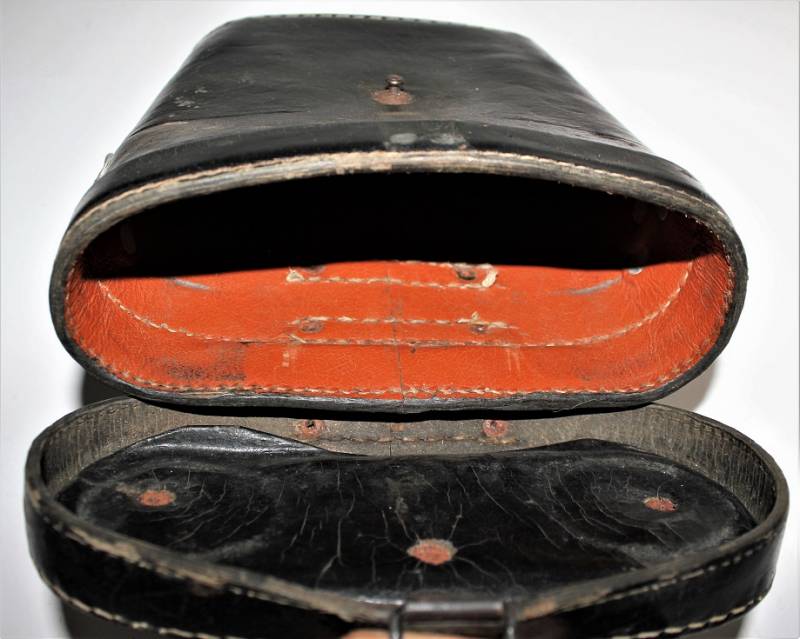 Contenitore in pelle per binocolo 7x50 in discrete condizioni, non riparato o restaurato con cuciture sane, pelle ancora in discrete condizioni, il tutto con patina del tempo e dellŽuso, marcato con nome del fabbricante, data 1942 e waffenamnt.