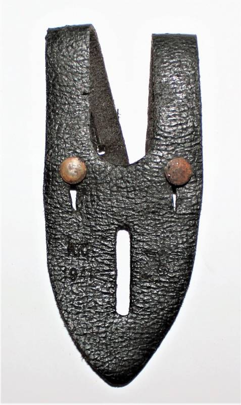 Attacco in pelle per bottone giacca del binocolo 6x30 o 7x50 in buone condizioni, ma con patina del tempo e dellŽuso, pelle buona e morbida, marcato con codice fabbricante, data 1941 e waffeanmt.