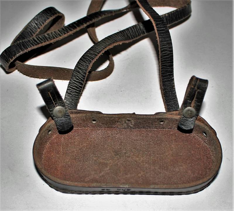 Perfetta chiusura in pelle completa di tracolla per oculari binocolo 6x30 in ottime condizioni, quasi pari al nuovo, marcata con codice fabbricante "ghn", data 1942. Originale 100% WWII periodo.