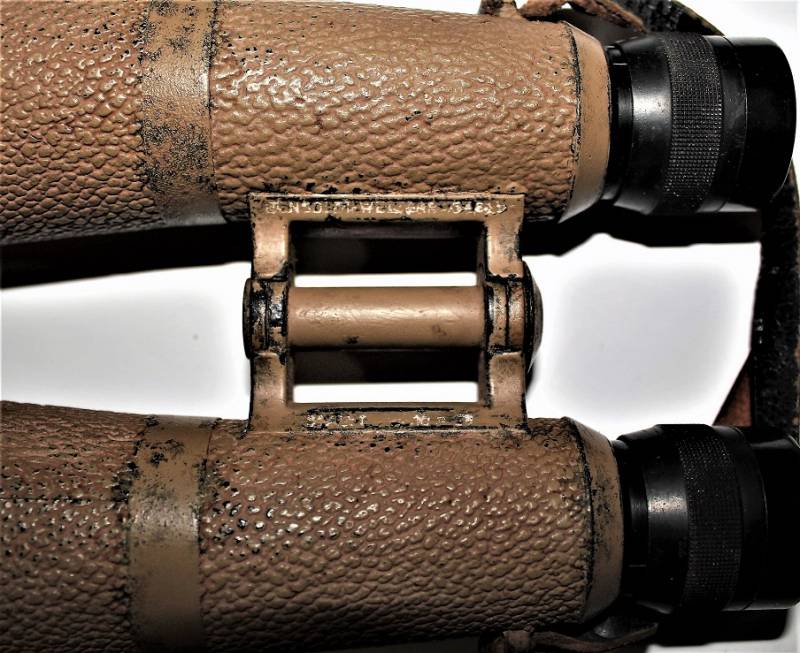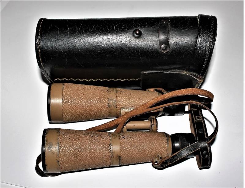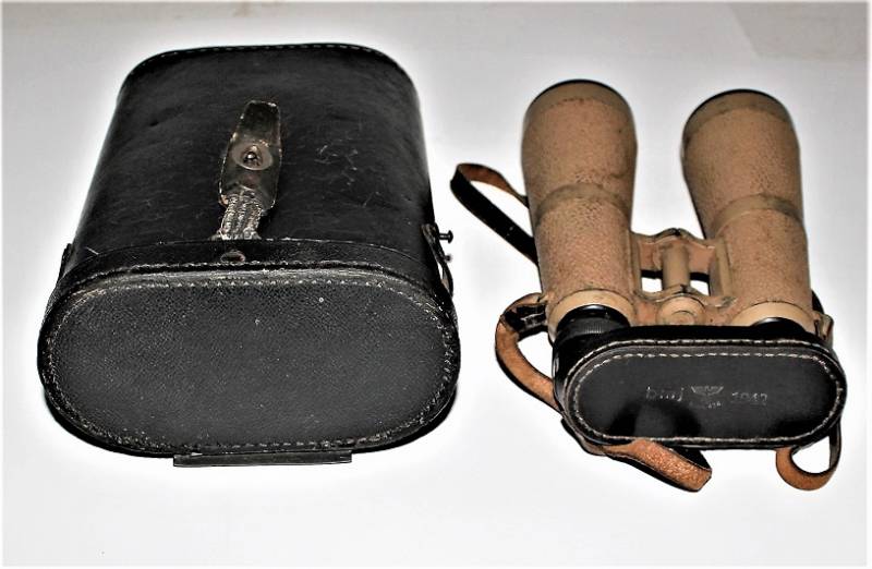 Binocolo 10x50 in colorazione gialla tropicale al 90%, (di solito in uso all´equipaggi Panzer), completo della sua custodia in pelle, il tutto in ottime condizioni con leggeri segni del tempo e dell´uso, non restaurato o riparato, lenti mai smontate, immagine molto chiara, senza reticolo, scatola marcata con codice fabbricante, waffenamt e data 1942, stessa marcatura sul copri lenti in pelle, anche l´ottica è marcata con fabbricante e numero di lotto. Originale 100% WWII periodo.