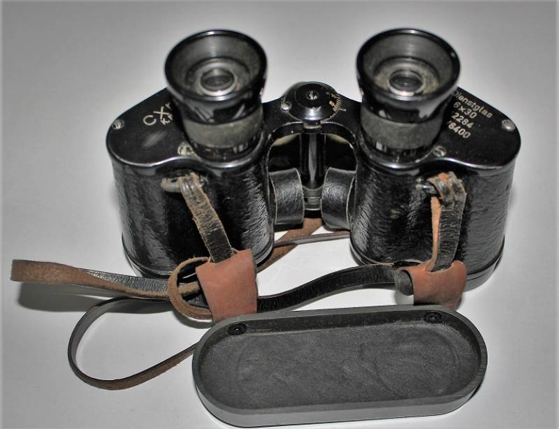 Binocolo CXN K.F (EMIL BUSCH) 6x30 in ottime condizioni quasi pari al nuovo, leggerissimi segni di usura e del tempo, vernice al 95%, non restaurato o riparato, mai smontato, lenti ottime con reticolo, perfettamente funzionante, completo di tutti gli accessori. Originale 100% WWII periodo.