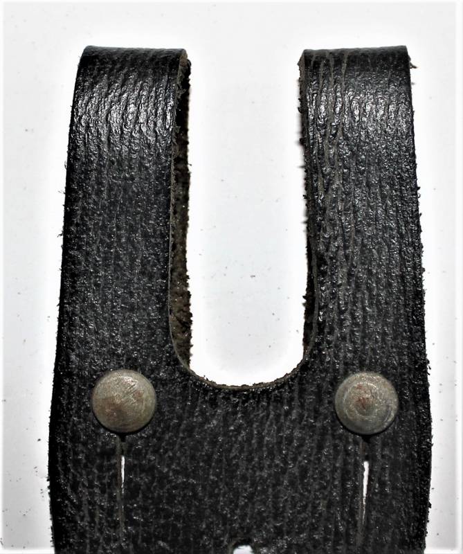 Fettuccia in pelle per attacco binocolo a giacca, condizioni ottime, con leggera patina del tempo e dellŽuso, marcato con sigla fabbricante e data. Originali 100% WWII periodo.
