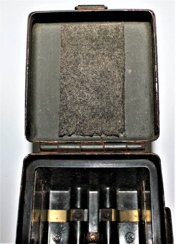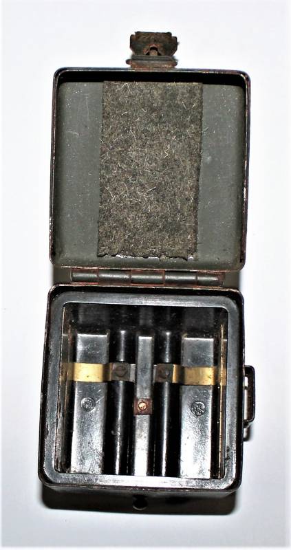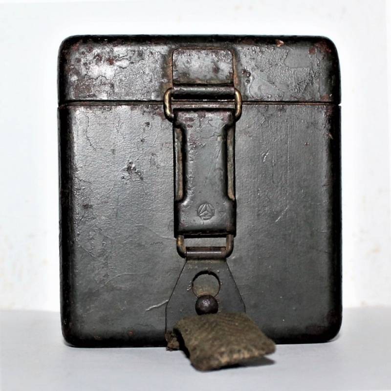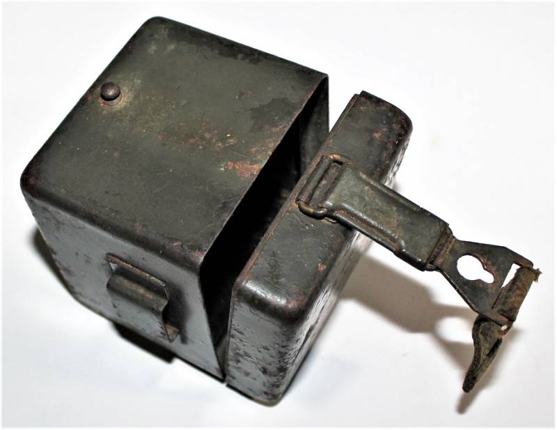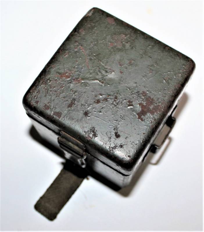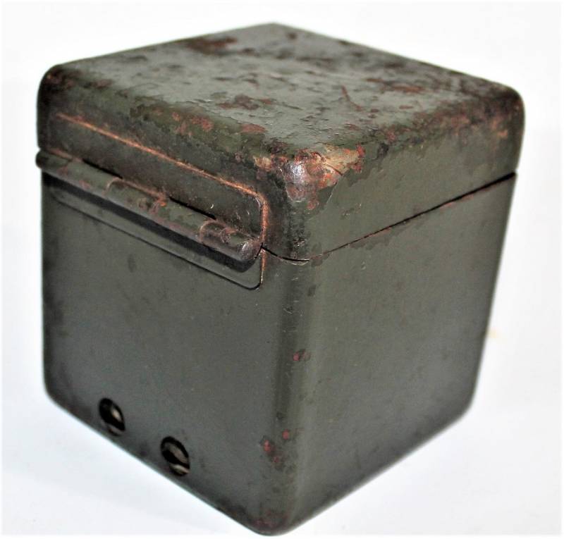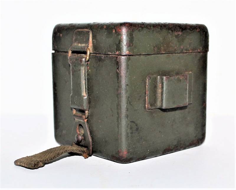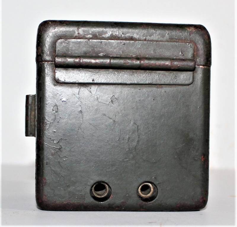 Contenitore in metallo per pile illuminatore affusto Lafette MG34-42 in buone condizioni, completo in ogni sua parte, con patina del tempo e dellŽuso, verniciatura allŽ80%. Originale 100% WWII periodo.