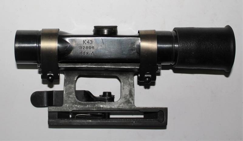 Perfetta ottica mod. ZF4 per fucile K43-G43 in condizioni perfette pari al nuovo, non restaurata o riparata e perfettamente funzionante, marcata con numero di serie e codice fabbricante. LŽattacco e il paraluce in gomma sono delle ottime riproduzioni perfettamente identiche alle originali. Ottica garantita 100% originale WWII periodo.