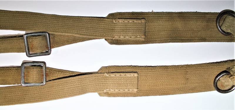 Spallacci tropicali DAK in buone condizioni, usati con patina del tempo ma completi in ogni sua parte, cuciture perfette, senza buchi o strappi, marcati con numeri di serie. Originale 100% WWII periodo.