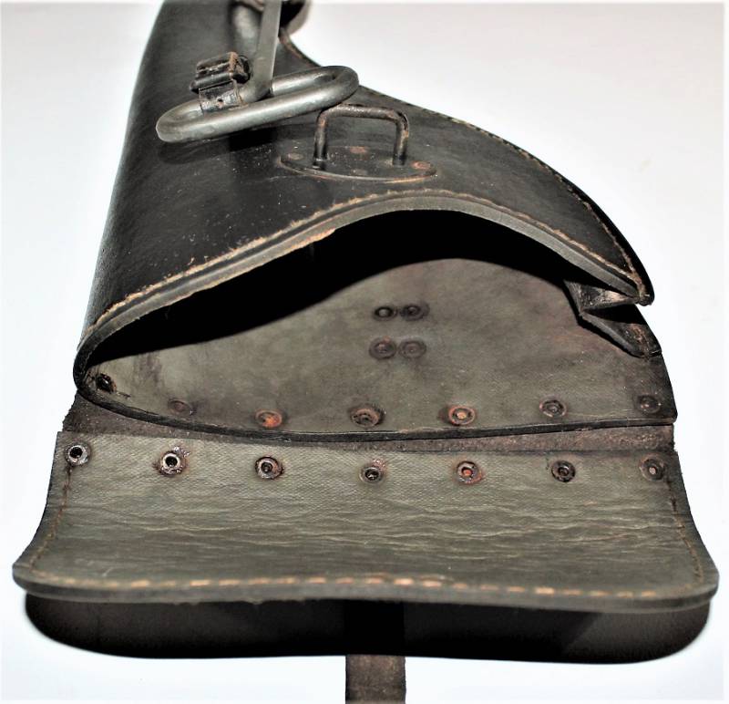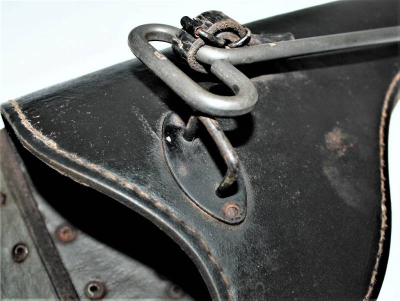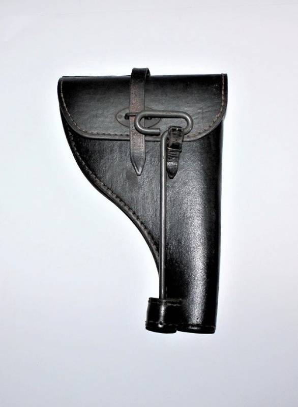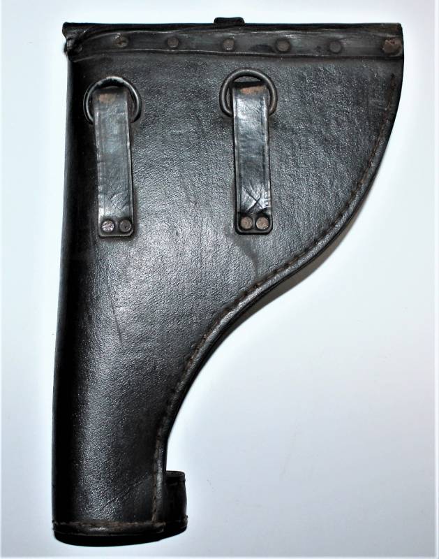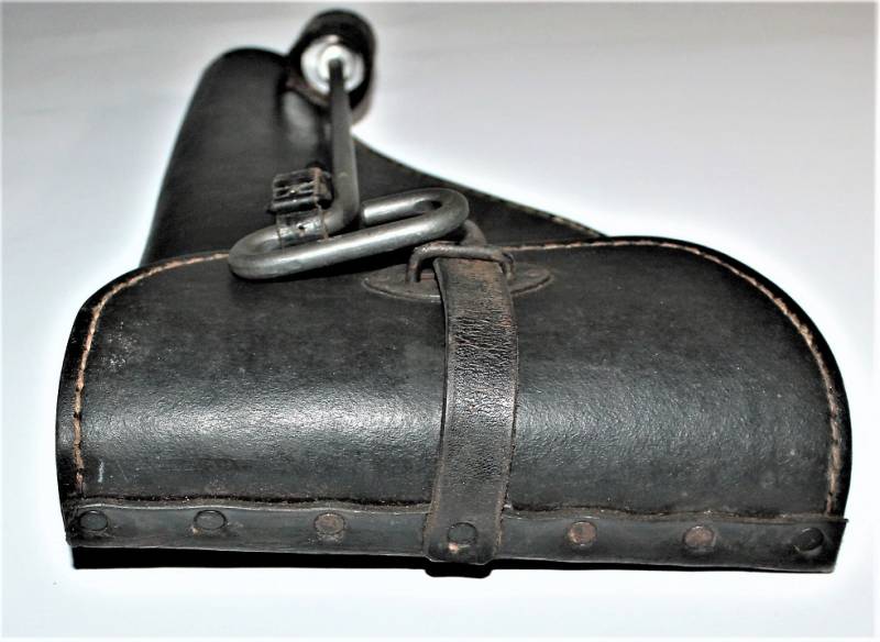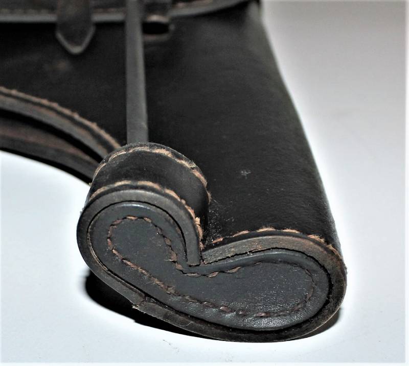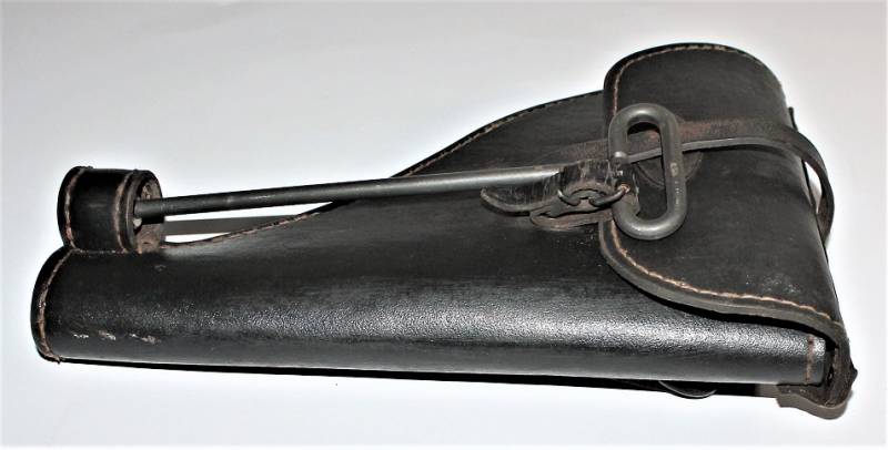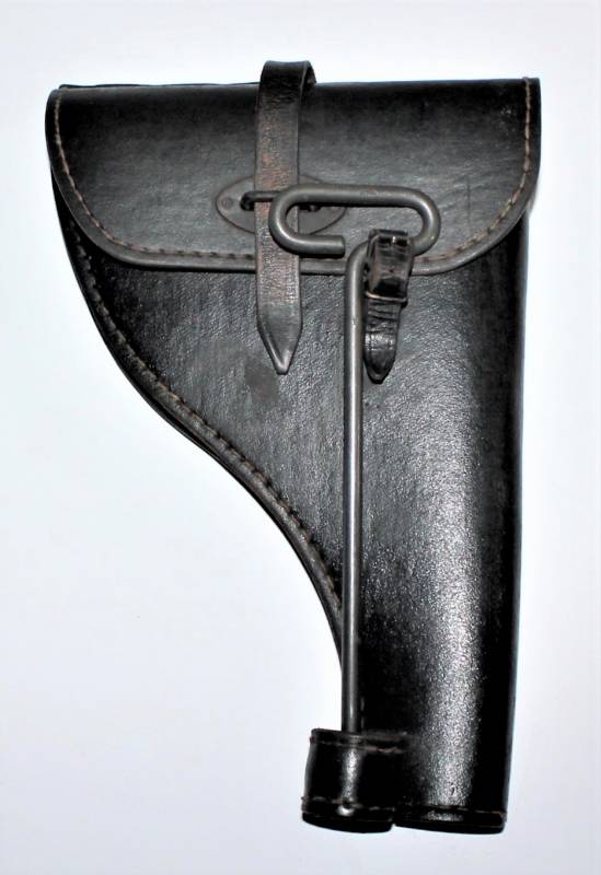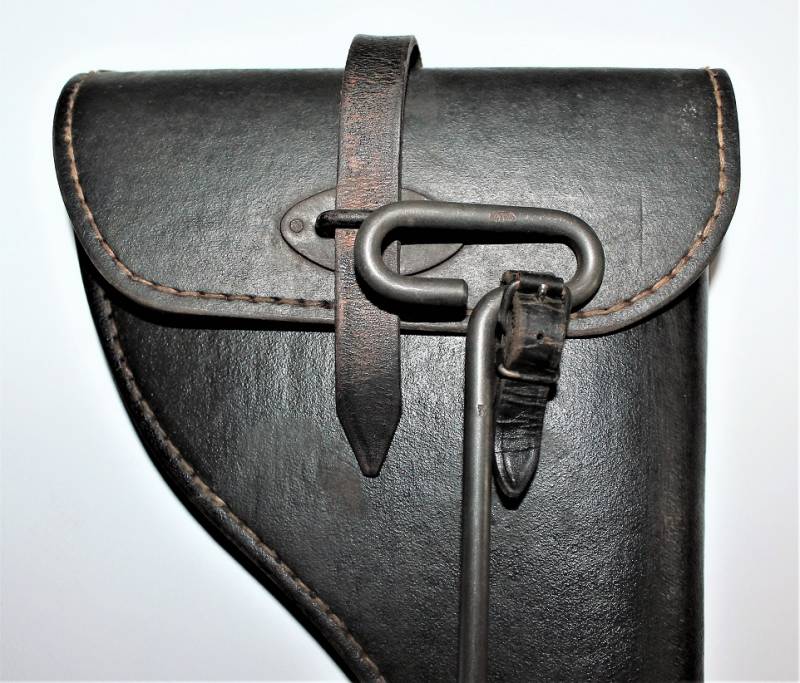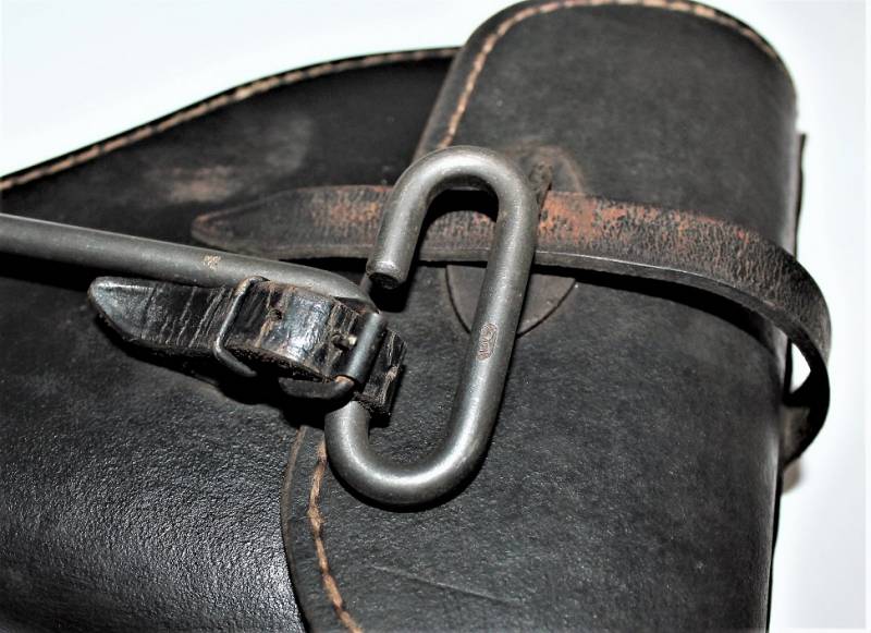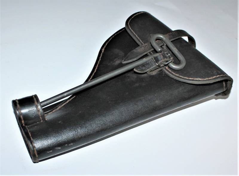 Fondina mod.43 per pistola lancia razzi, nata in cartone pressato colorazione nero modello fine guerra, condizioni ottime, solo leggera patina del tempo e dellŽuso, non riparata o restaurata, non lesionata e cuciture perfette, completa in ogni sua parte, compreso scovolo marcato con waffenante. AllŽinterno sŽintravede il nome del fabbricante e il waffenant. Originale 100% WWII periodo.