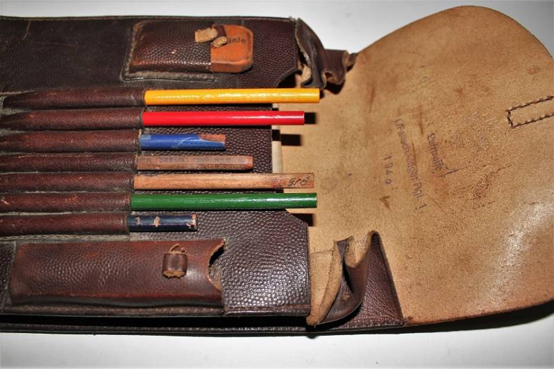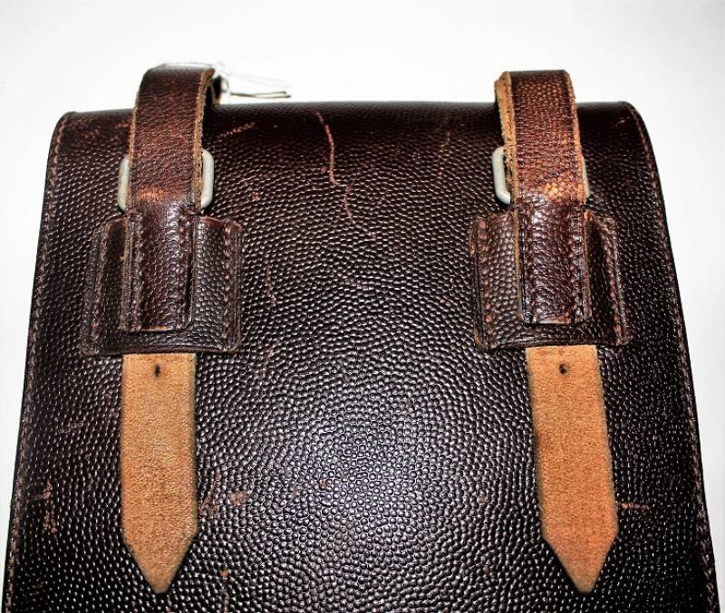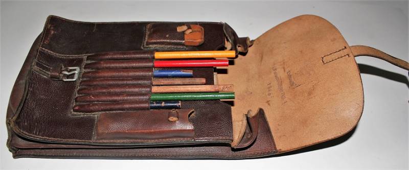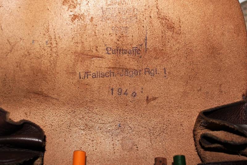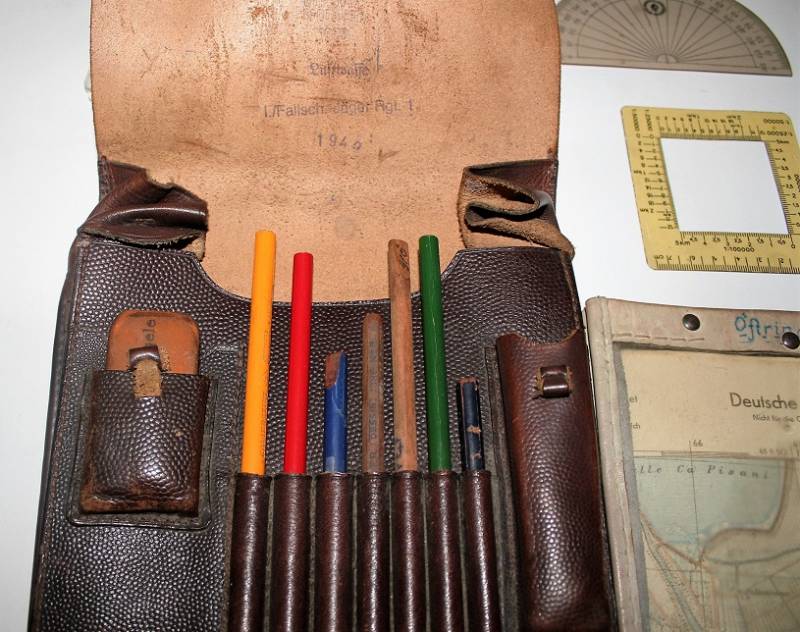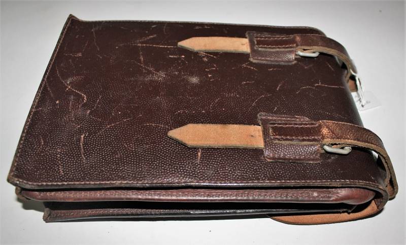 Porta documenti da Ufficiale LW nato in pelle marrone, in ottime condizioni, non lesionato, pelle e cuciture perfette, leggerissima patina del tempo, marcato internamente con nome del fabbricante e data 1939, ulteriore marcatura a timbro della 1°compagnia Rgt.1 paracadutisti della Luftwaffe. Completo allŽinterno di tutti gli accessori come da foto. Originale 100% WWII periodo.