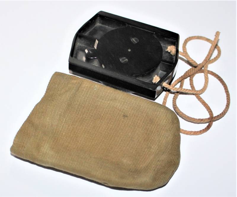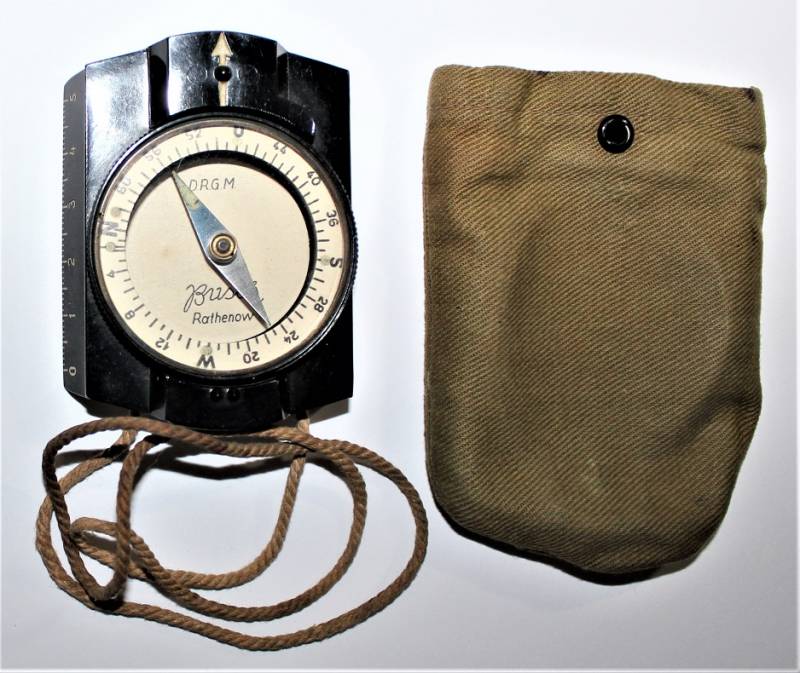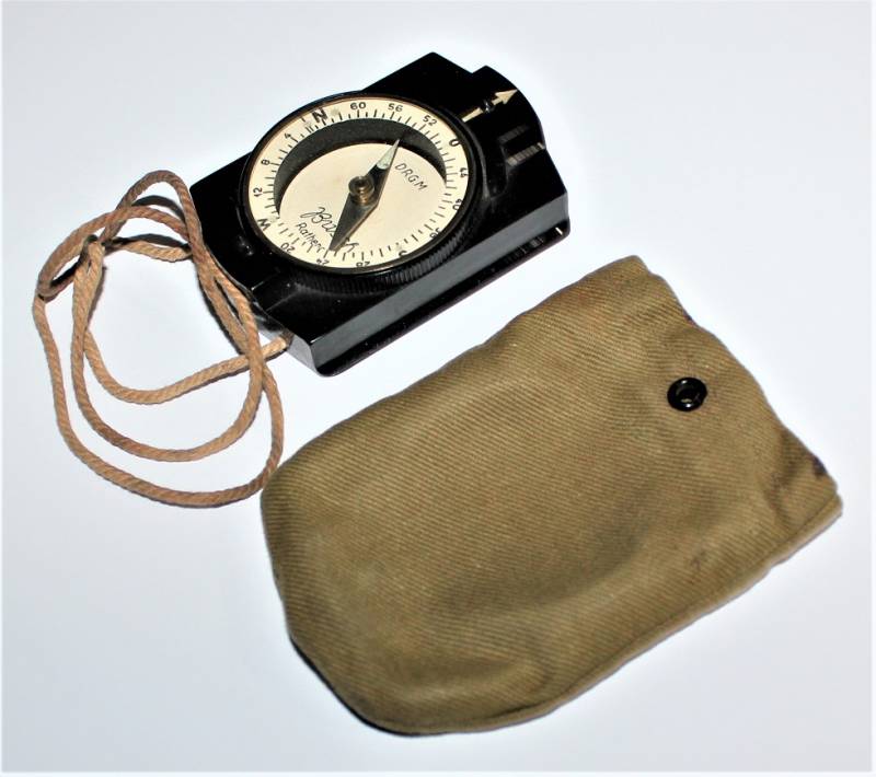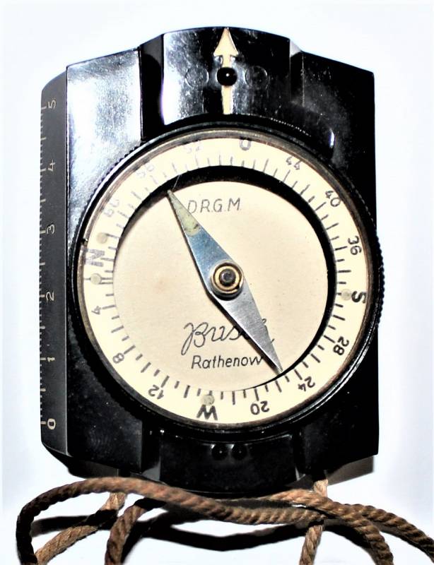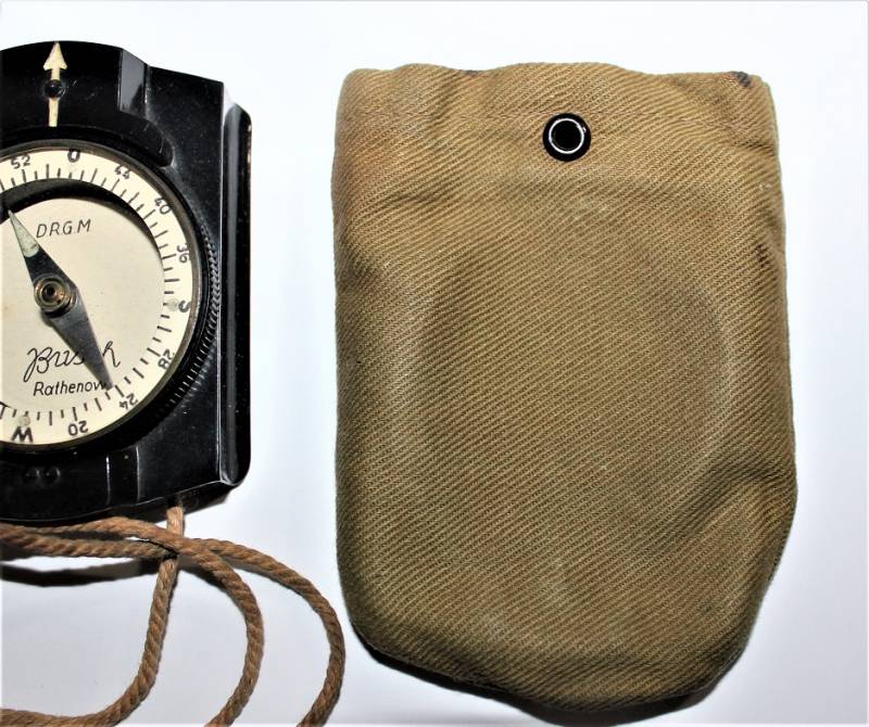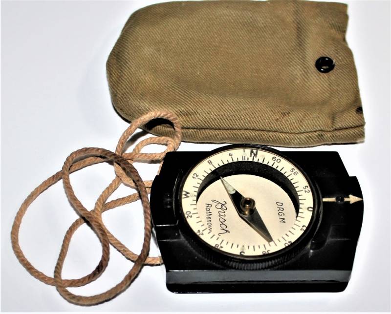 Bussola in bakelite nera per WH-SS.LW in ottime condizioni quasi pari al nuovo, perfettamente funzionante, marcata con nome del fabbricante BUSCH e sigla D.R.G.M., completo di custodia in tela. Originale 100% WWII periodo.