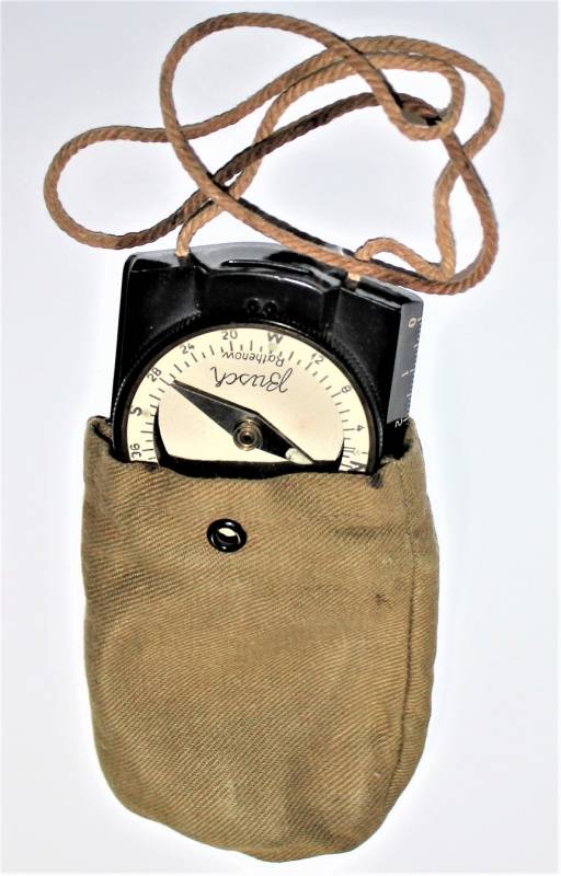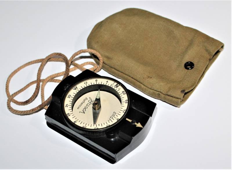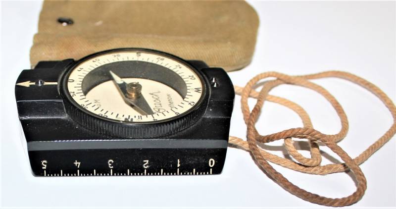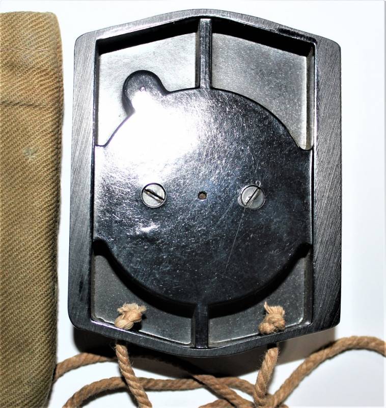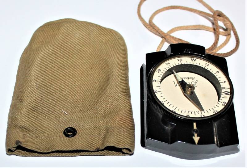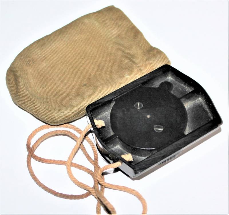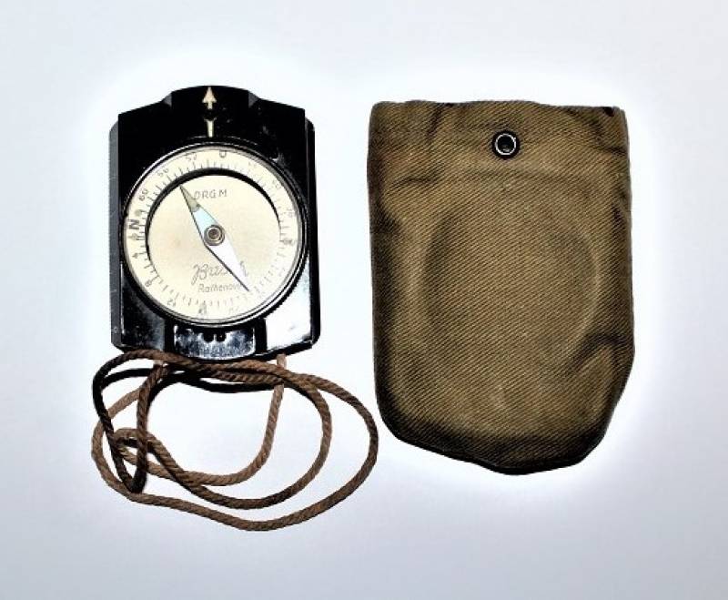 Bussola in bakelite nera per WH-SS.LW in ottime condizioni quasi pari al nuovo, perfettamente funzionante, marcata con nome del fabbricante BUSCH e sigla D.R.G.M., completo di custodia in tela. Originale 100% WWII periodo.