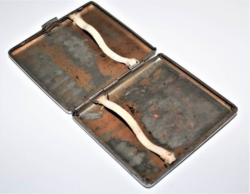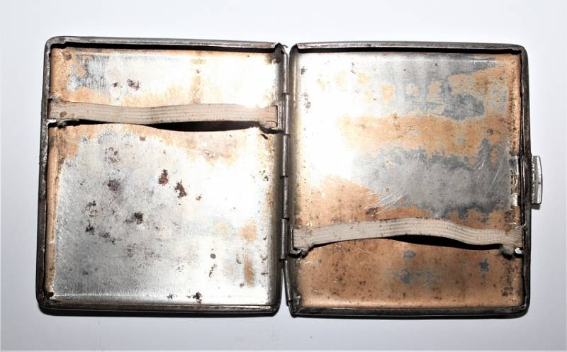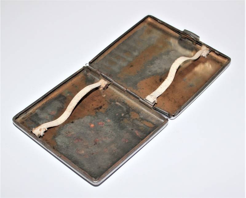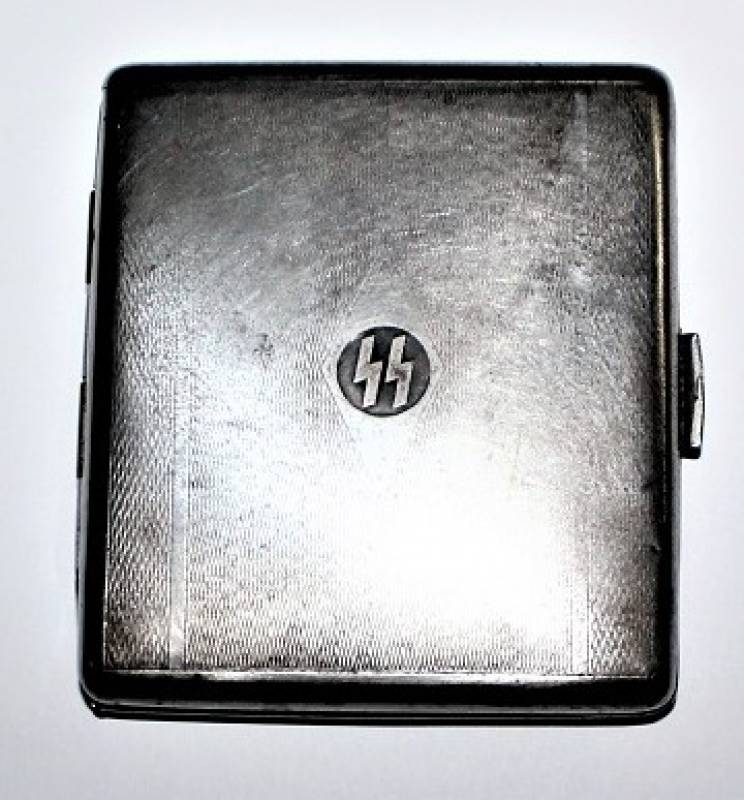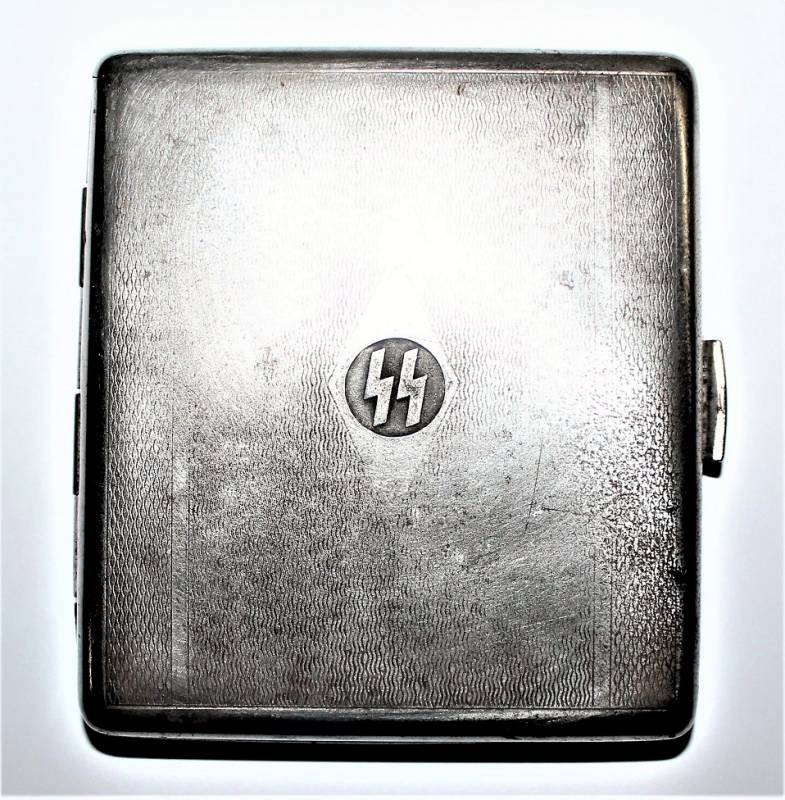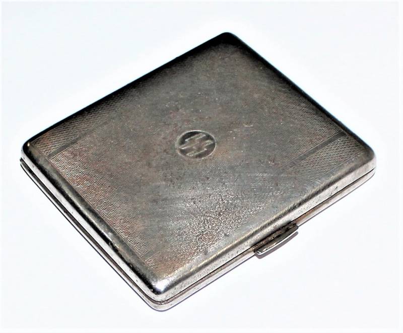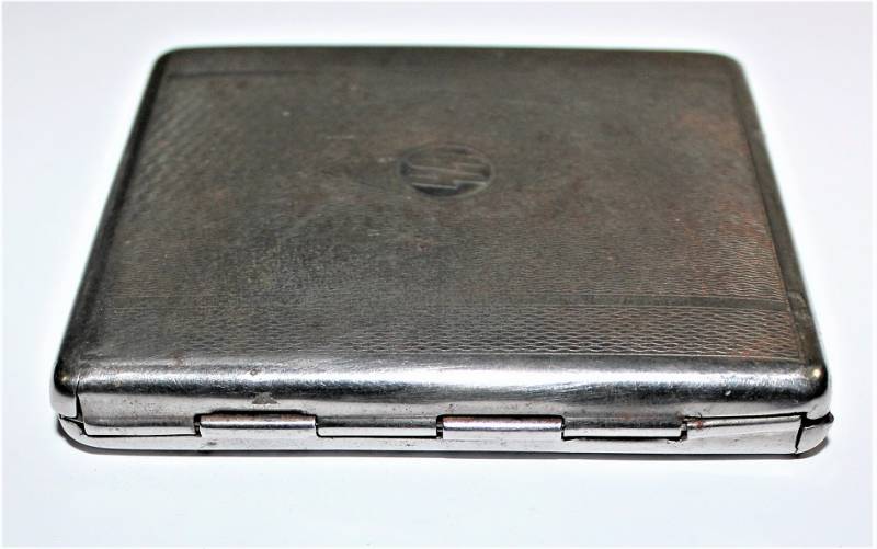 Porta sigarette in metallo argentato con marchio SS, sicuramente appartenuto ad un Ufficiale dell W.SS, condizioni buone ma con patina del tempo e dellŽuso. Originale 100% WWII periodo.