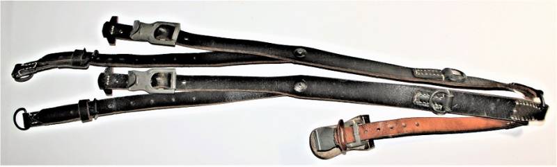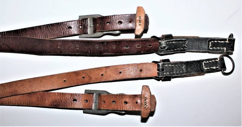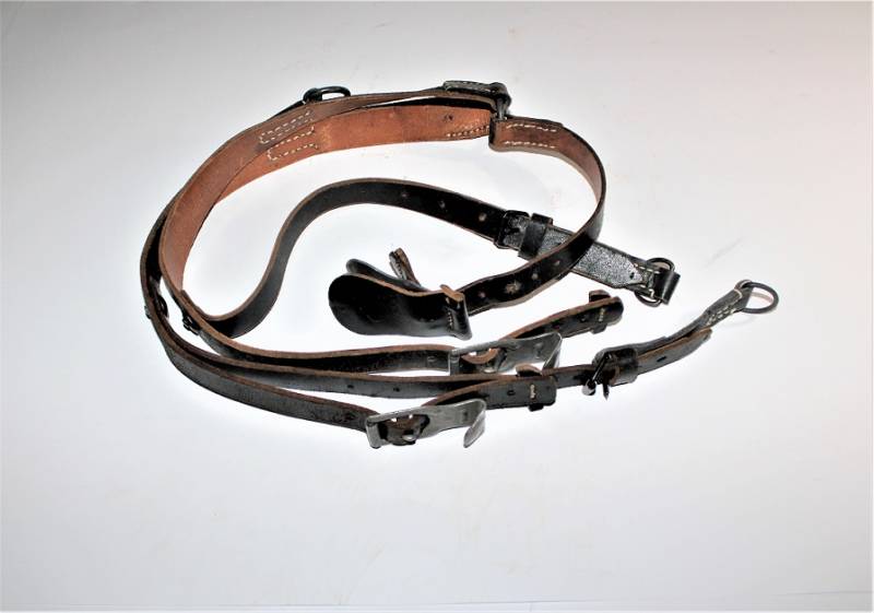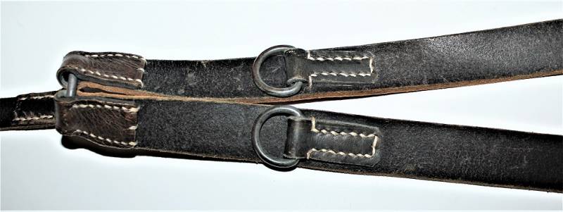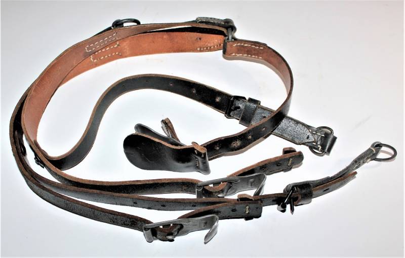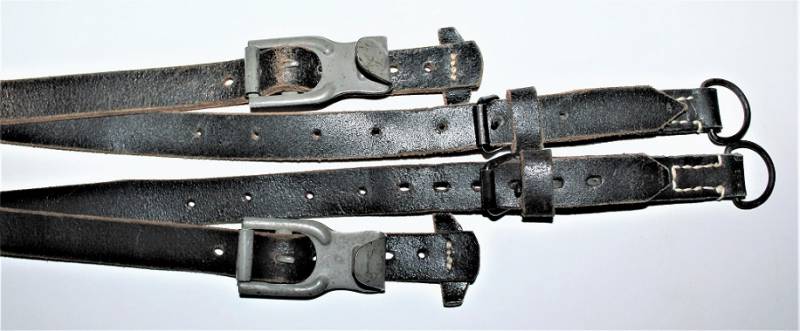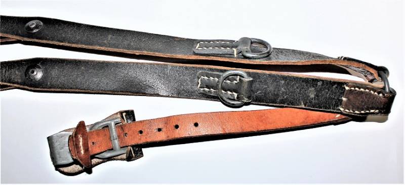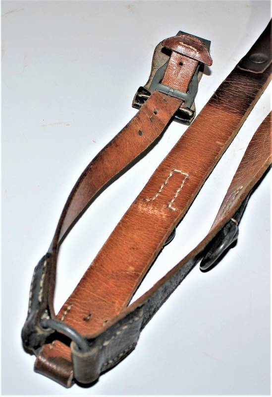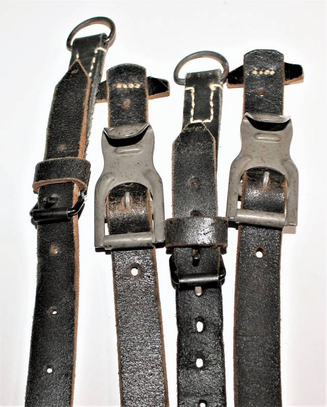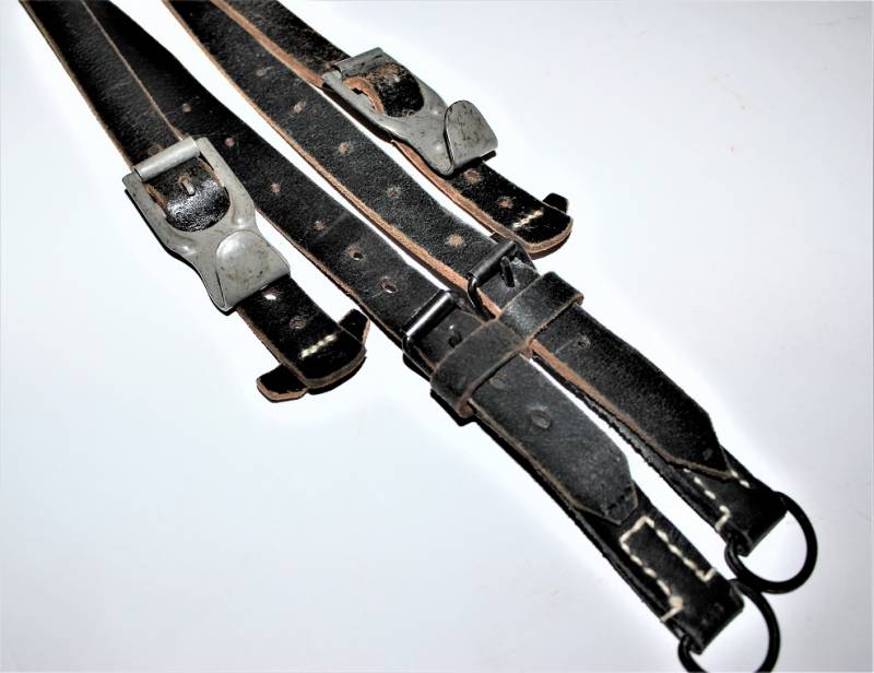Spallacci a "Y" regolamentari in dotazione a tutti i reparti WH-SS-LW, condizioni perfette forse mai usati, come nuovi, pelle sana non lesionata, cuciture perfette, non restaurati o riparati, completi in tutte le sue parti, marcati con logo del fabbricante e data 1942. Originale 100% WWII periodo.