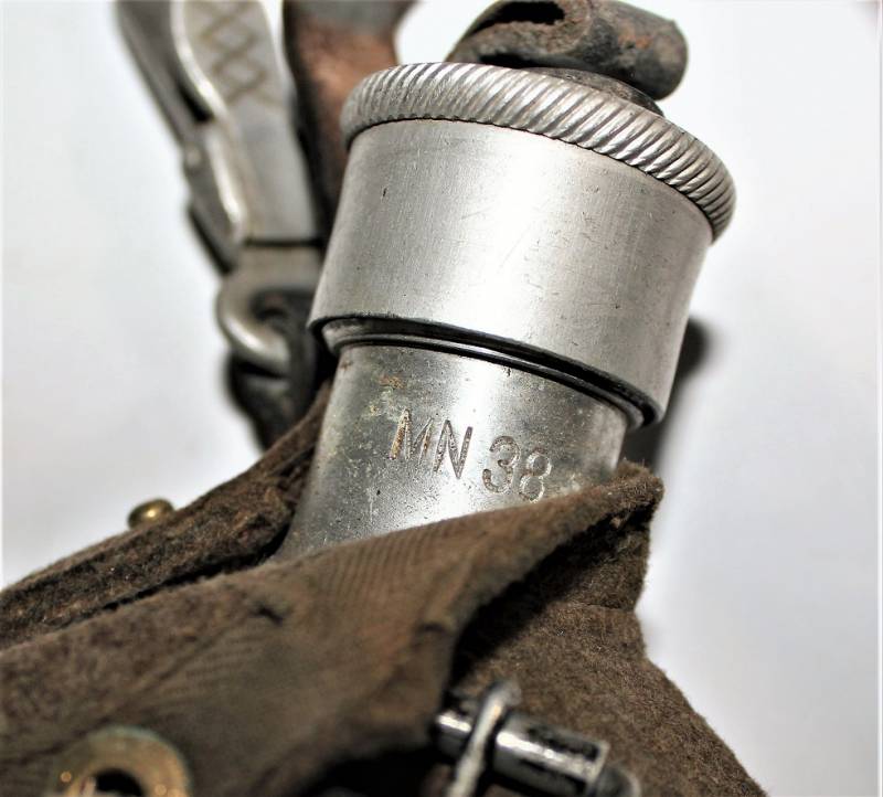 Borraccia WH-LW-SS in buone condizioni, con patina del tempo e dellŽuso, completa con cinghiaggio in pelle, marcata con fabbricante e data. Originale 100% WWII periodo.