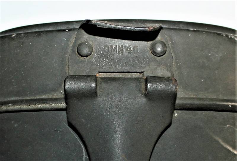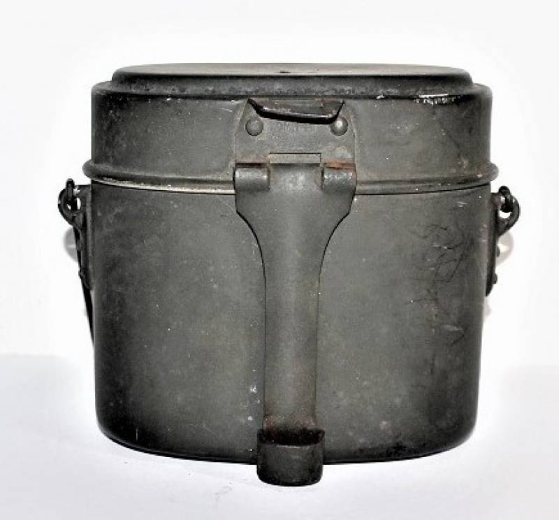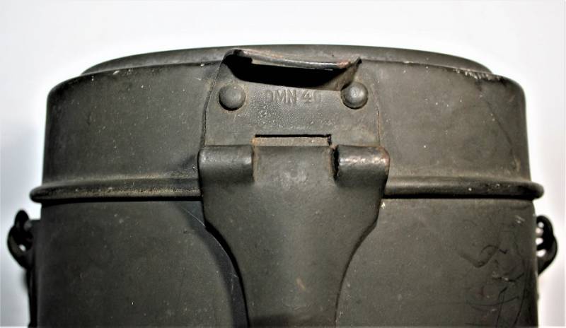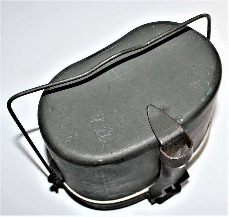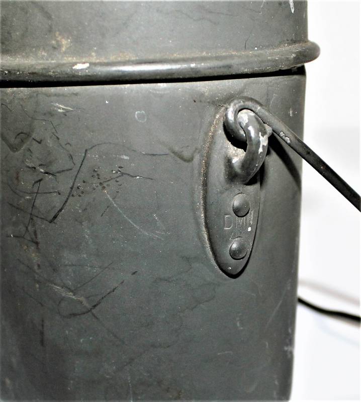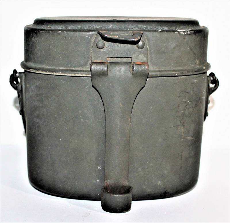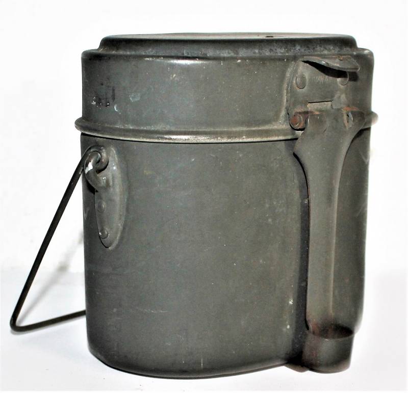 Gavetta in alluminio in colorazione verde felgrau quasi al 100%, condizioni molto belle, marcata con sigla fabbricante DMN 40. Originale 100% WWII periodo.