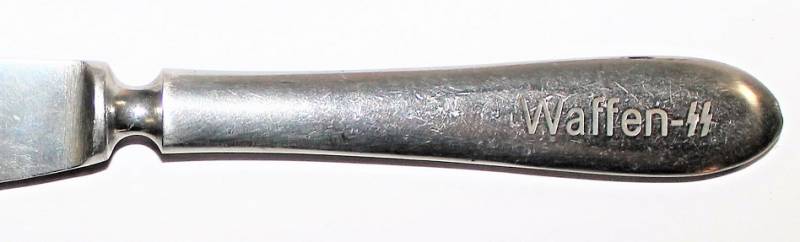 Coltello da cucina in acciaio inox marcato Waffen-SS in ottime condizioni, solo leggera patina dellŽuso. Originale 100% WWII periodo.