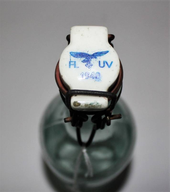 Bottiglia per bevanda della LW in ottime condizioni, tappo in ceramica marcato con emblemi LW e data 1940. Originale 100% WWii periodo.