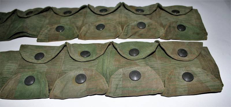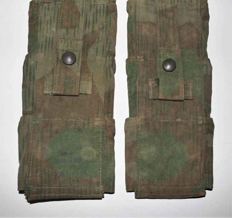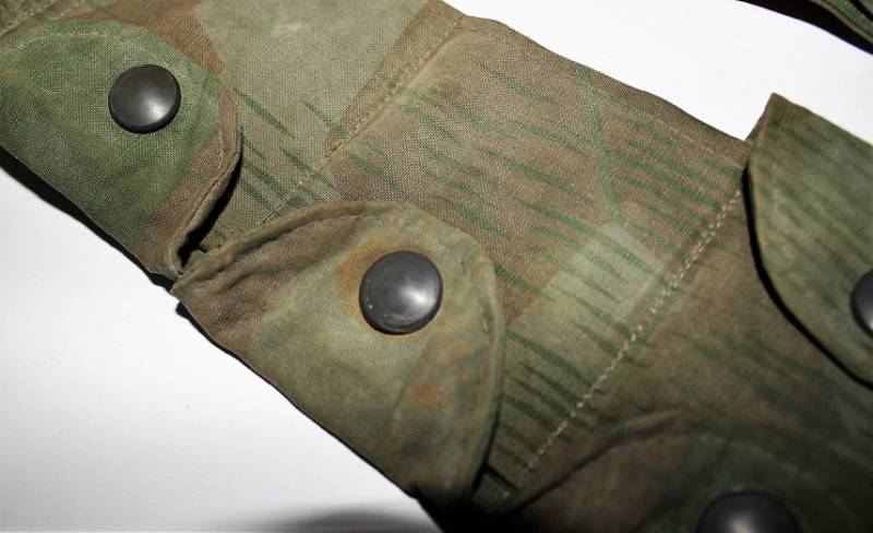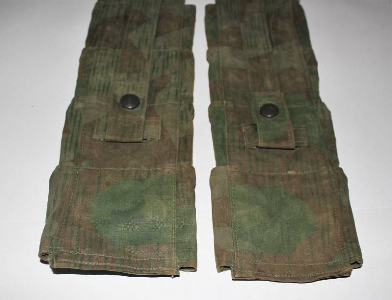 Bandoliera mod.M38 della LW da paracadutista per fucile K98, realizzata in tela di cotone mimetica, ottime condizione completa in ogni sua parte, non lesionata, cuciture perfette, ma con patina dellŽuso e del tempo, leggerissimo scolorimento dei colori del mimetismo, marcata sul retro con RBN... e L.B.A.(S)43. Originale 100% WWII periodo.