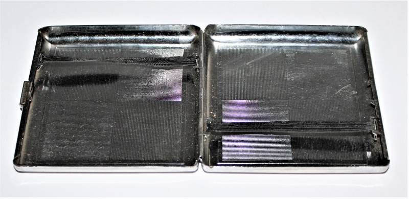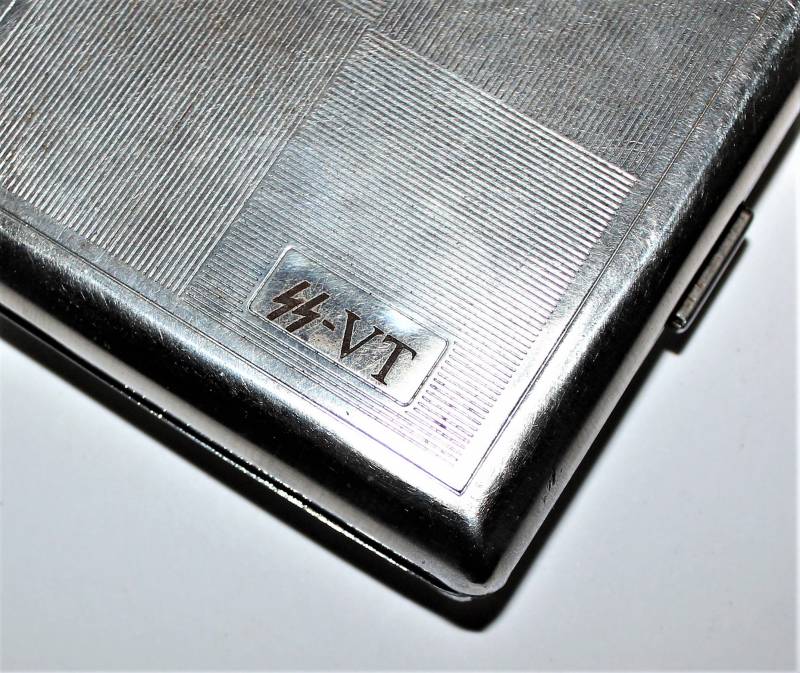 Portasigarette in metallo argentato marcato SS-VT in ottime condizioni con leggerissima patina del tempo e dellŽuso, completo in ogni sua parte.