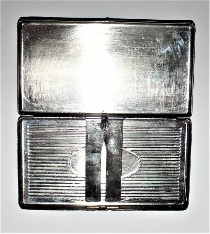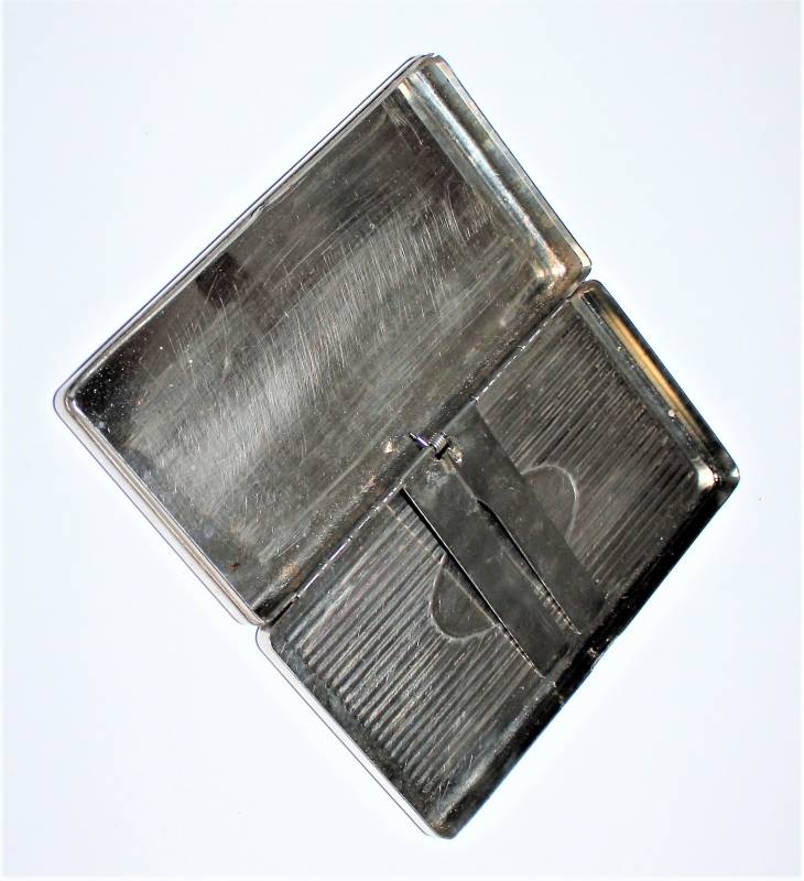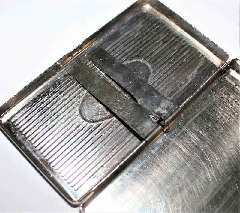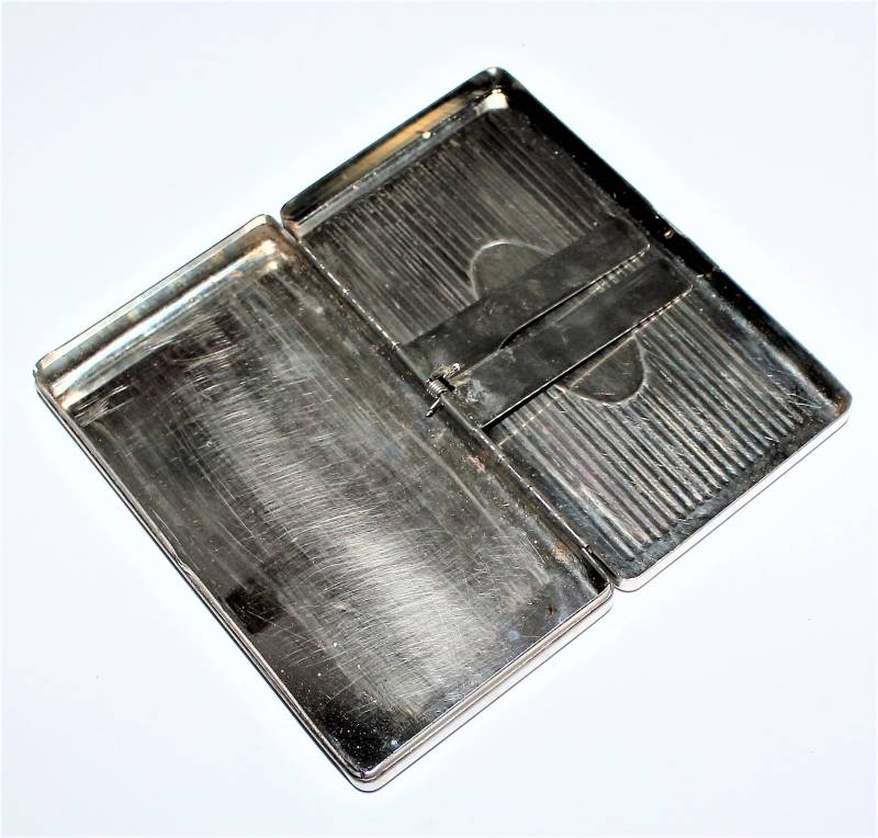 Portasigarette in metallo argentato marcato W.SS, condizioni buone ma con patina del tempo e dellŽuso, completo in ogni sua parte, internamente è stato pulito.