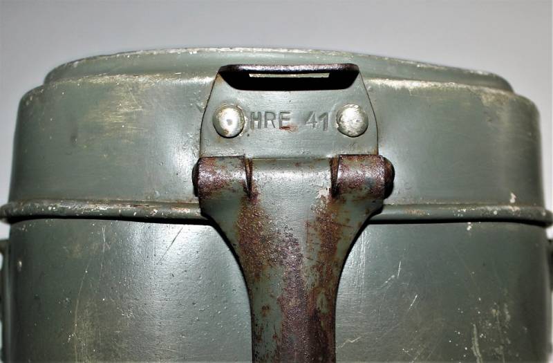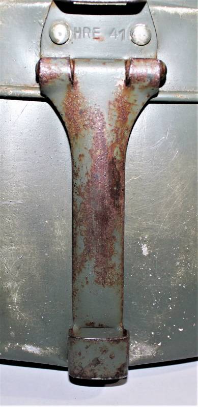 Gavetta in alluminio M31 in colorazione verde chiaro 1°tipo al 90%, condizioni belle, completa in ogni sua parte, non restaurata solo con patina del tempo e dellŽuso, marcata con sigla fabbricante HRE 41.