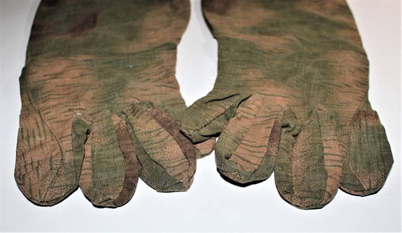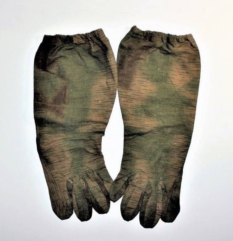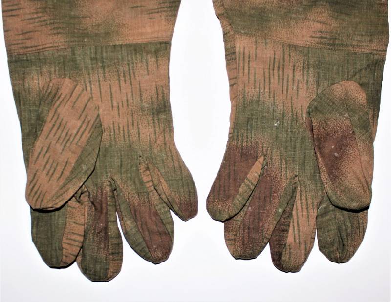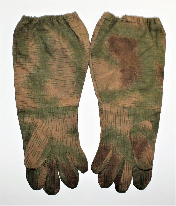 Guanti mimetici da cecchino WH-LW in condizioni perfette pari al nuovo mai indossati, nati in cotone leggero, marcati internamente con RBN n.., taglia medio grande.