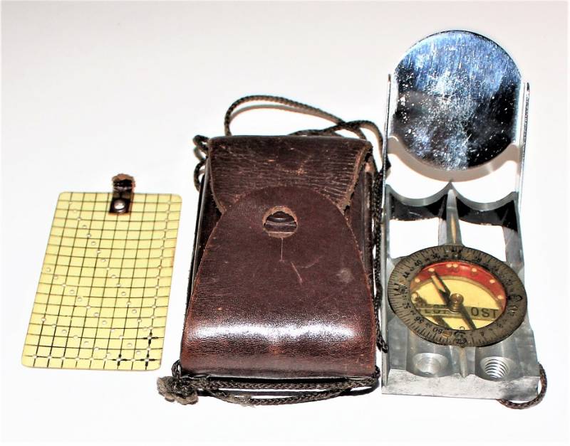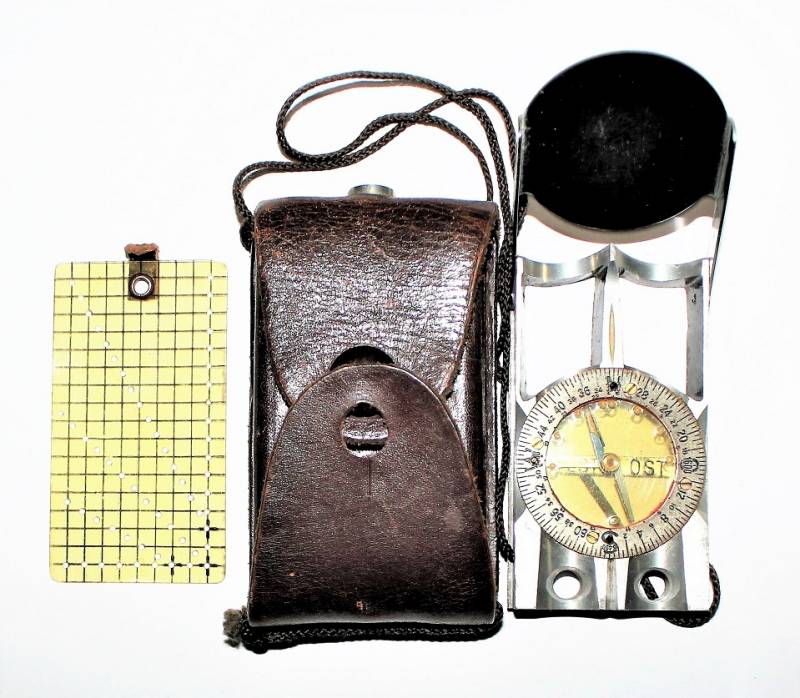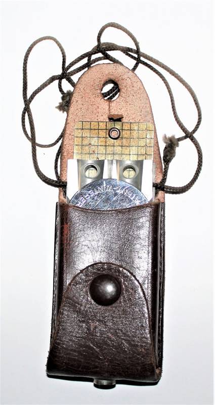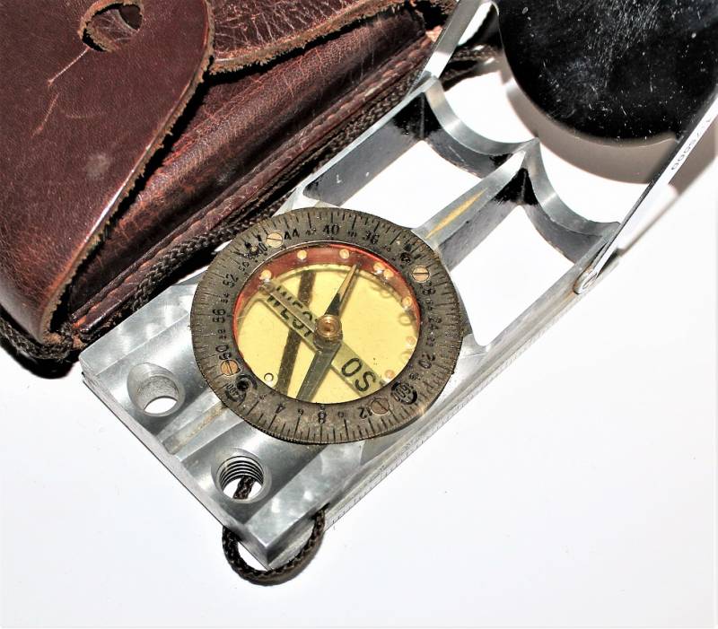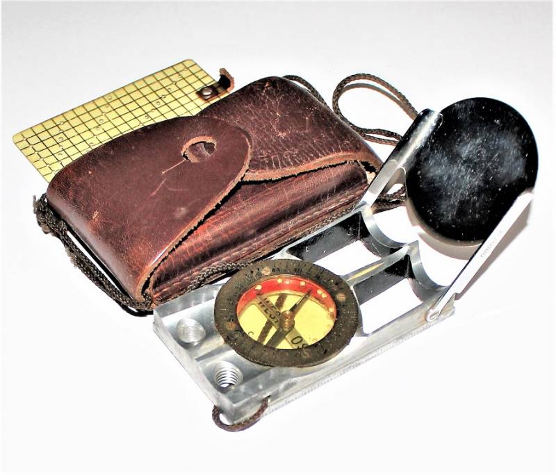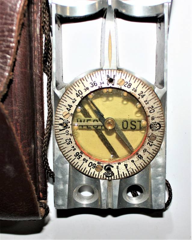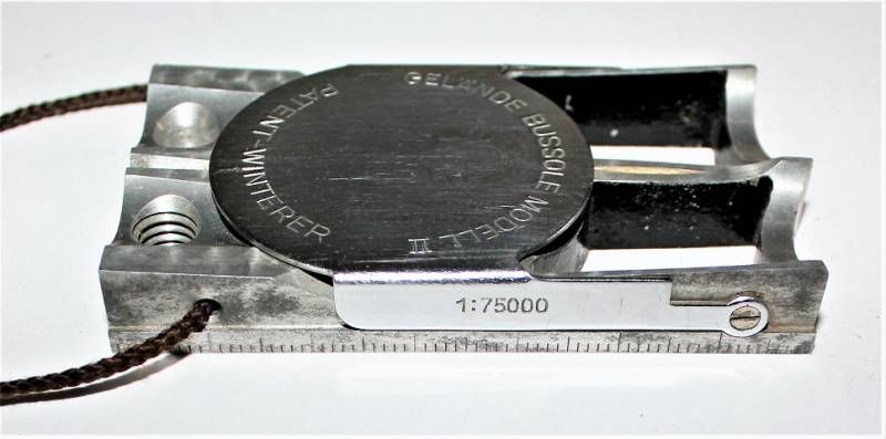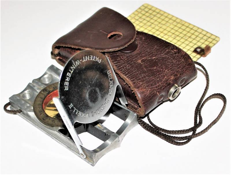 Bussola in metallo mod."WINTERER KOMPASS" in ottime condizioni, non restaurata o riparata, completa in ogni sua parte, compresa custodia in pelle, strumento puntatore della mappa e il suo cordino originale, perfettamente funzionante, il tutto con leggerissima patina del tempo e dellŽuso, quasi pari al nuovo.