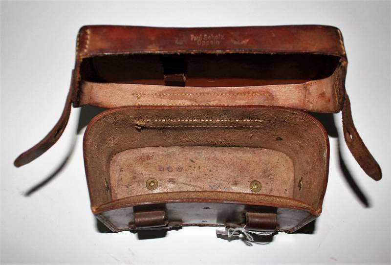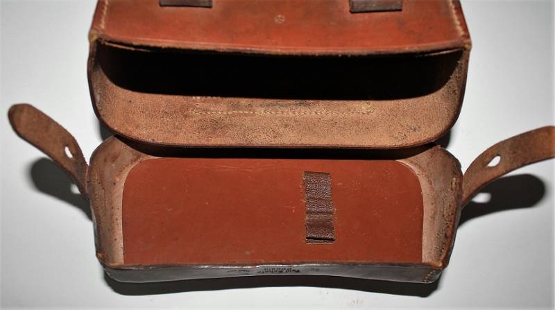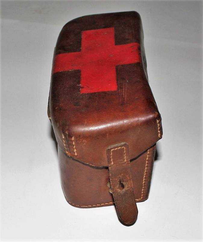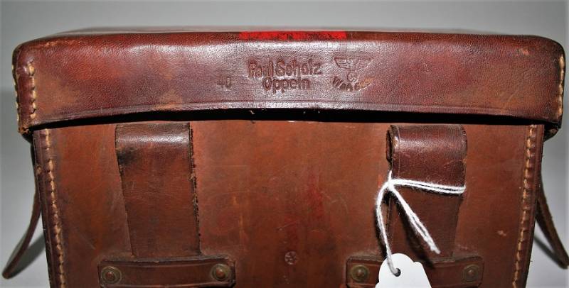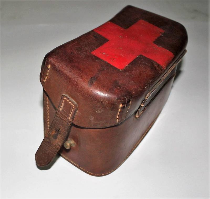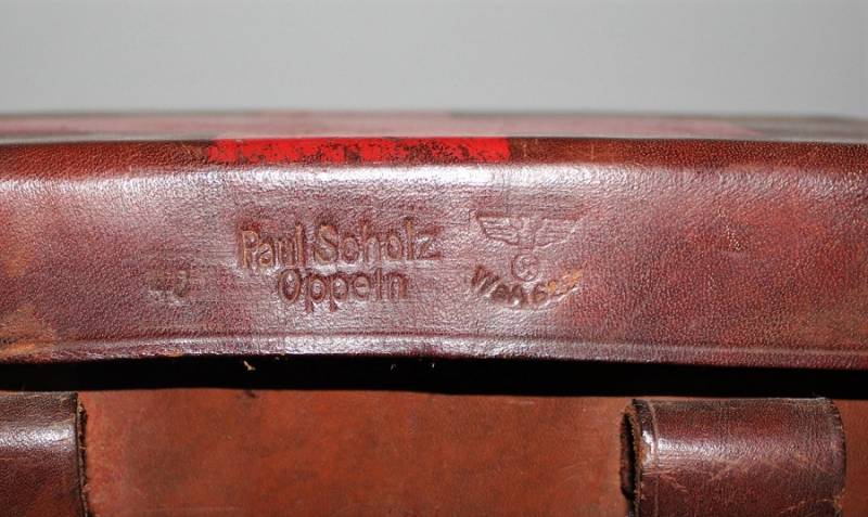 D.R.K. kit medico di primo intervento, nato in pelle marrone, marcato con fabbricante, data 1940 e waffenamt, in ottime condizioni, pelle e cuciture perfette, solo contenitore, vuoto dagli accessori. Originale 100% WWII periodo.