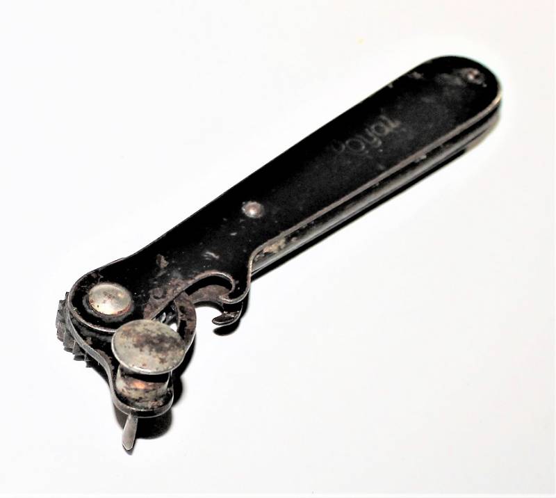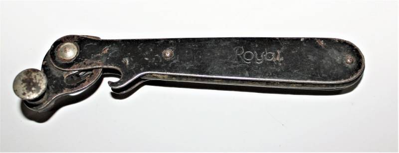 Apriscatole regolamentare in dotazione WH-LW-SS marcato con logo del fabbricante Royal, funzionante e in discrete condizioni, solo con patina del tempo e dellŽuso.