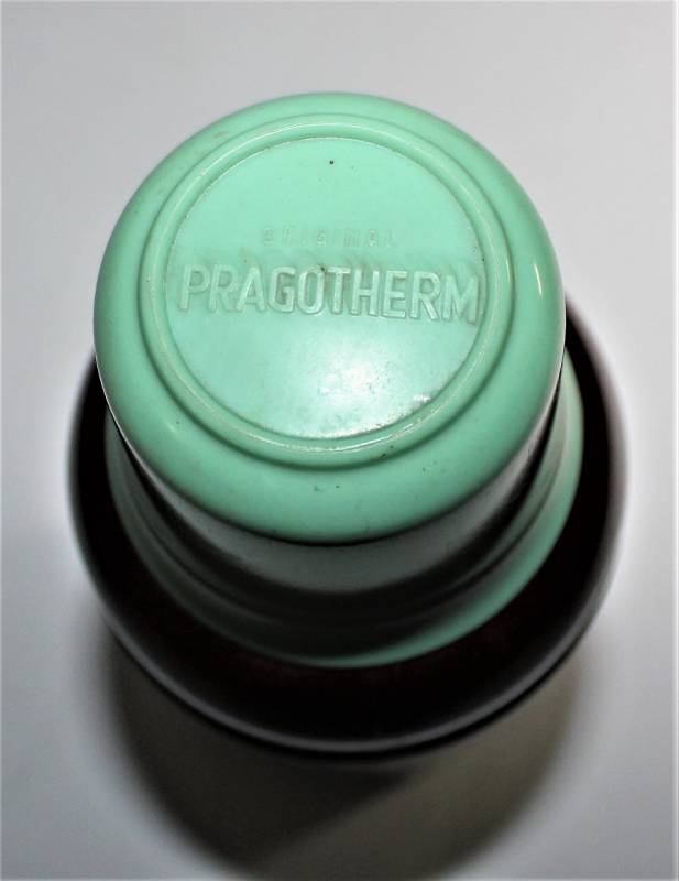 Thermos per bevande in bakelite rossa completo in ogni sua parte, in condizioni perfette e funzionante, bicchiere marcato con logo del fabbricante, produzione Ceco Slovacca usata come preda Bellica dallŽesercito tedesco.