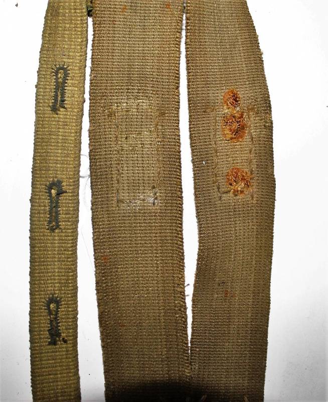 Spallacci tropicali DAK in buone condizioni, usati con patina del tempo ma completi in ogni sua parte. Originale 100% WWII periodo.