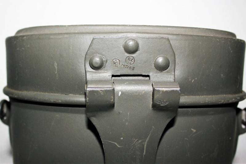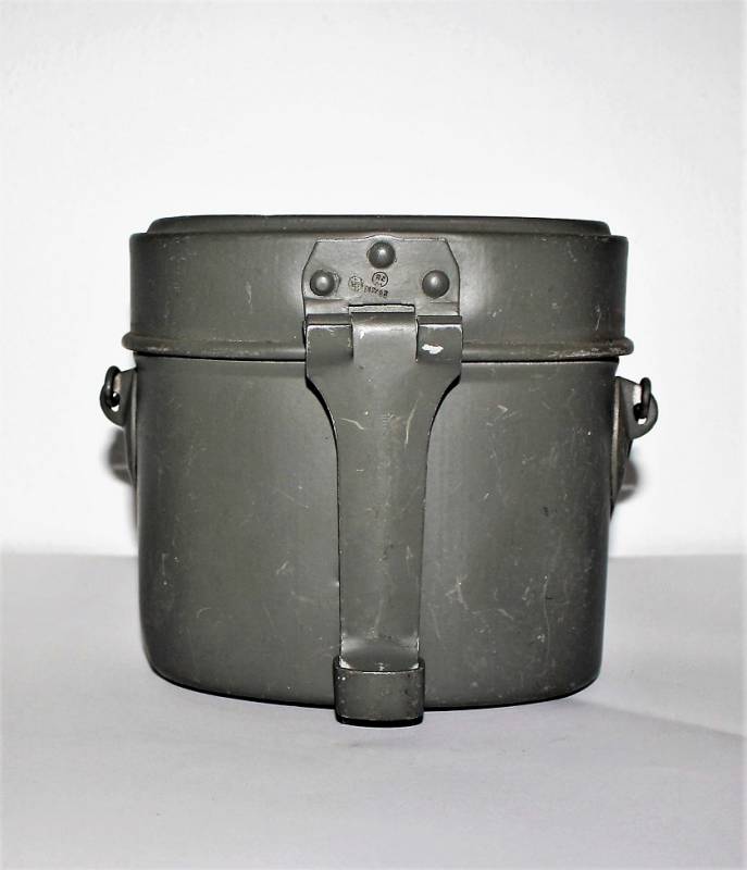 Stupenda gavetta prebellica con marchi dŽaccettazione RZM SS, condizioni perfette, quasi pari al nuovo, in colorazione grigio-verde chiaro al 99% di 1°tipo, completa anche di gavettino. Originale 100% WWII periodo.