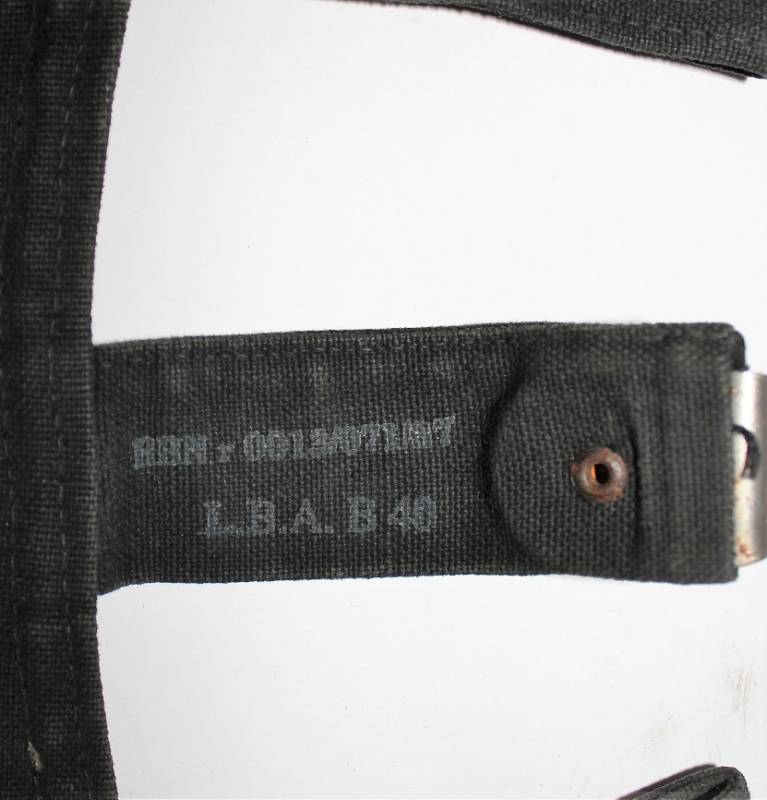 Tascapane della LW in tela color blu, completo di cinghiaggio, il tutto in buone condizioni, marcato con RBN n... e L.B.A. 40. Originale 100% WWII periodo.