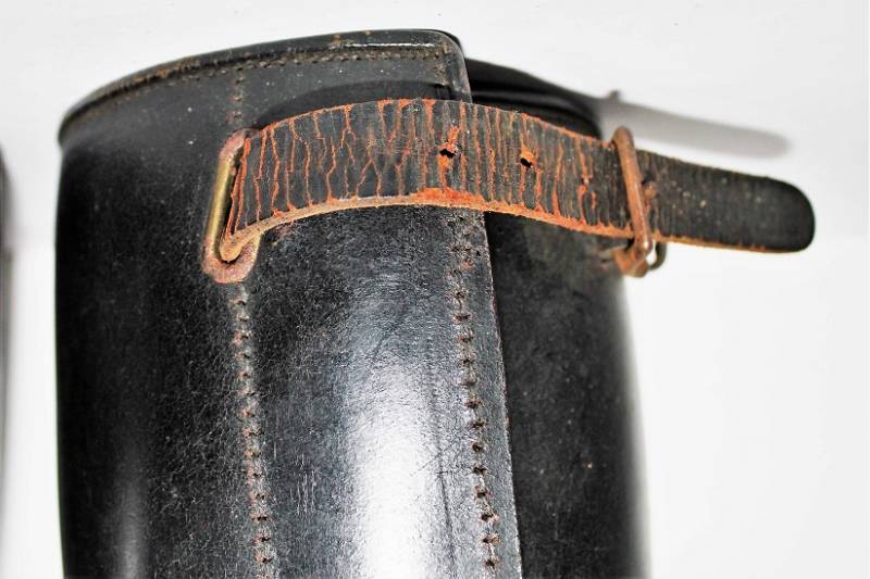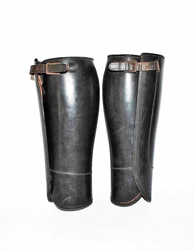 Ghette a gambale in cuoio per reparti Cavalleria o Polizia WH-SS-LW, condizioni ottime, pelle non lesionata completi in ogni sua parte, non restaurati o riparati. Su entrambi i gambali sono visibili i marchi del fabbricante. Originali 100% WWII periodo.