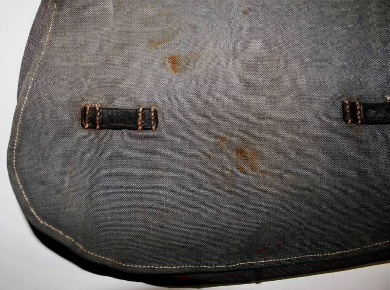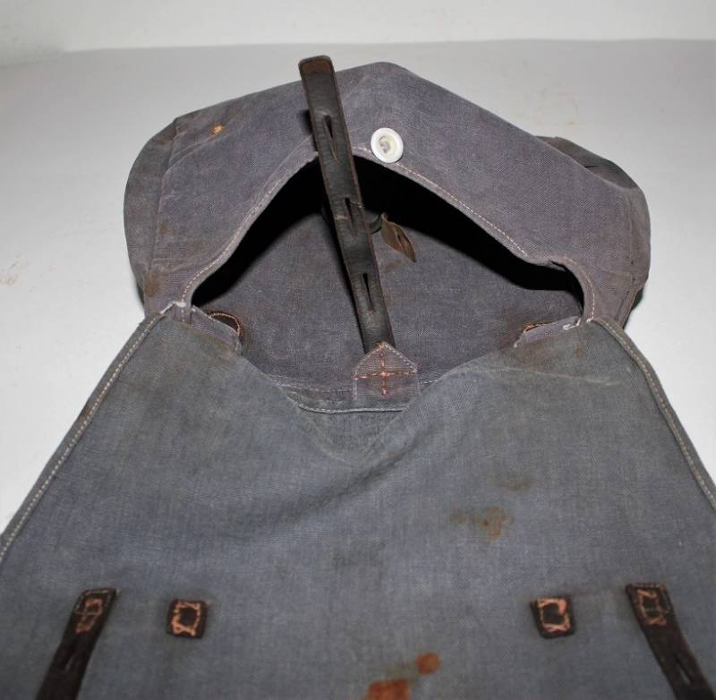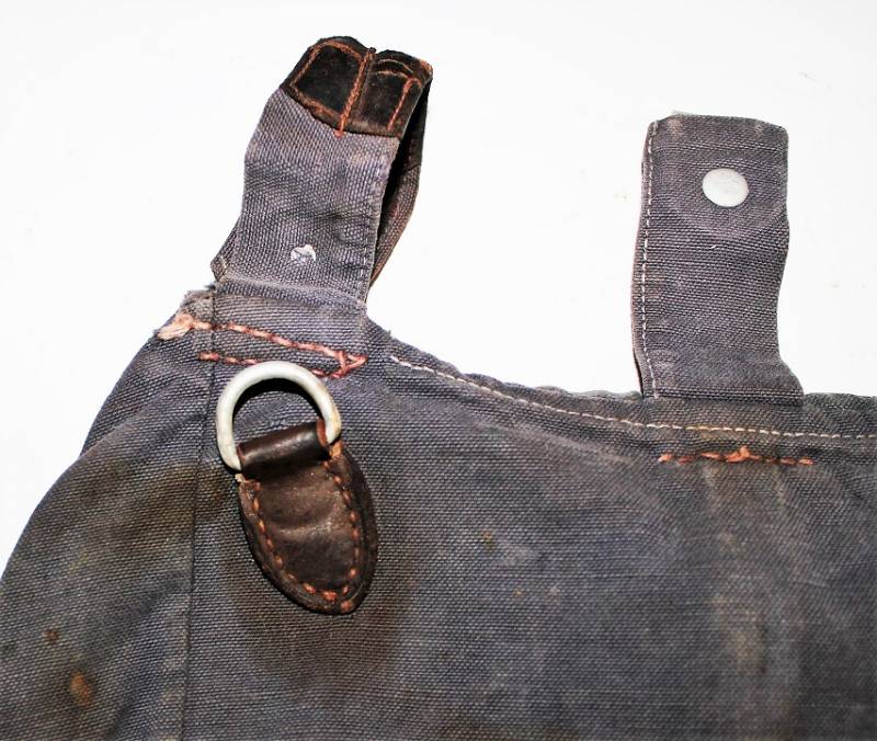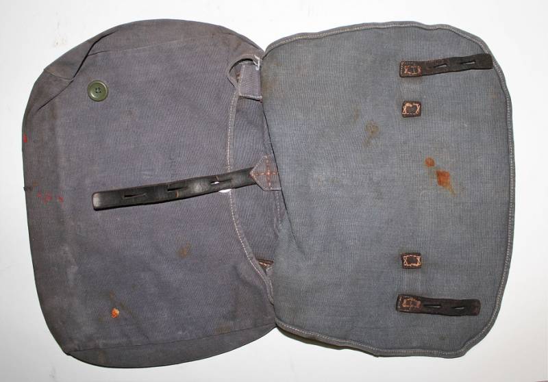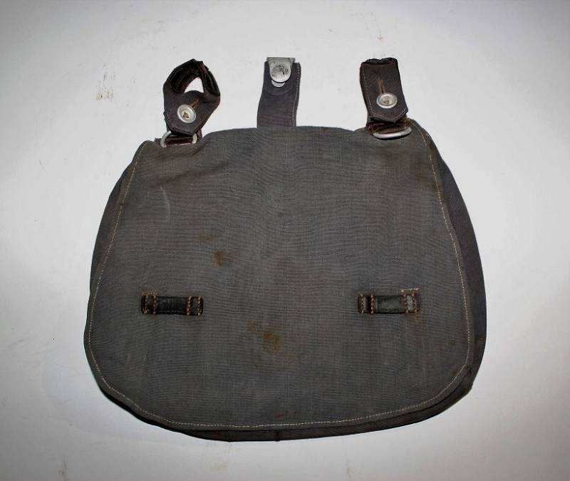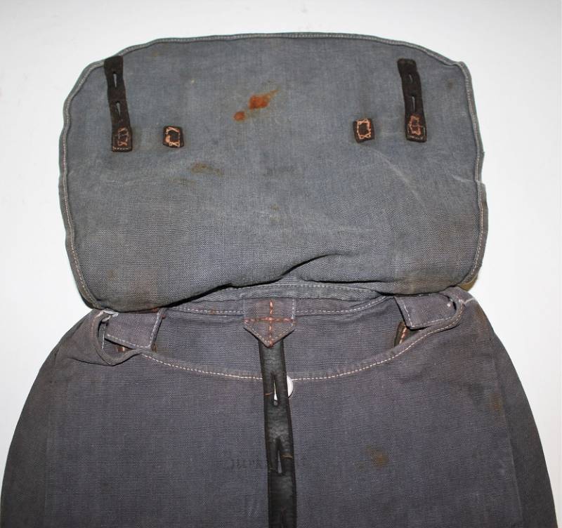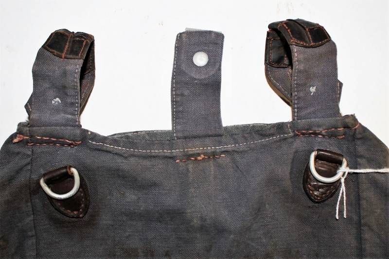 Tascapane della LW in tela color blu, leggera scoloritura causa patina del tempo e delŽuso, completo di cinghiaggio, la pelle degli accessori si presenta secca e screpolata, manca un bottone del cinghiaggio della parte interna. Originale 100% WWII periodo.