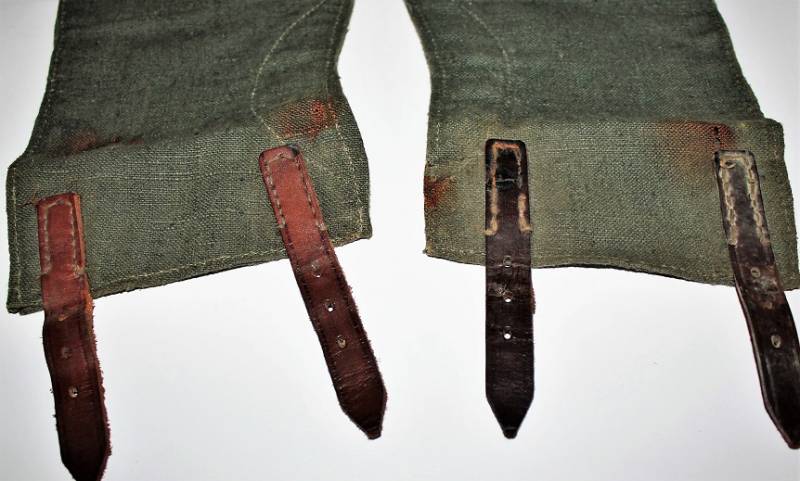Ghette WH in tela verde, complete ma vissute, cuoio lesionato, ma ancora indossabili. Marcate con RBN... e data 1943. Originali 100% WWII periodo.