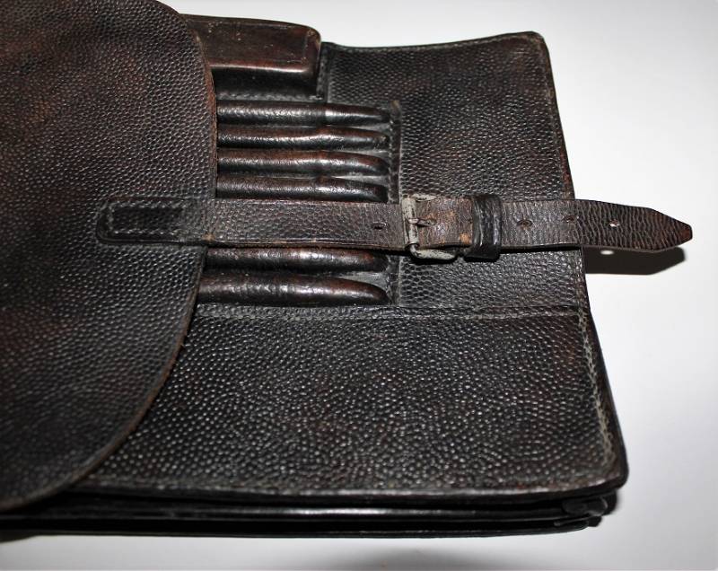 Porta documenti da Ufficiale WH-LW-SS nato in pelle colore nero, in ottime condizioni, quasi nuovo, pelle e cuciture perfette, con leggerissima patina del tempo e dellŽuso, marcato con logo fabbricante e data 1942. Originale 100% WWII periodo.
