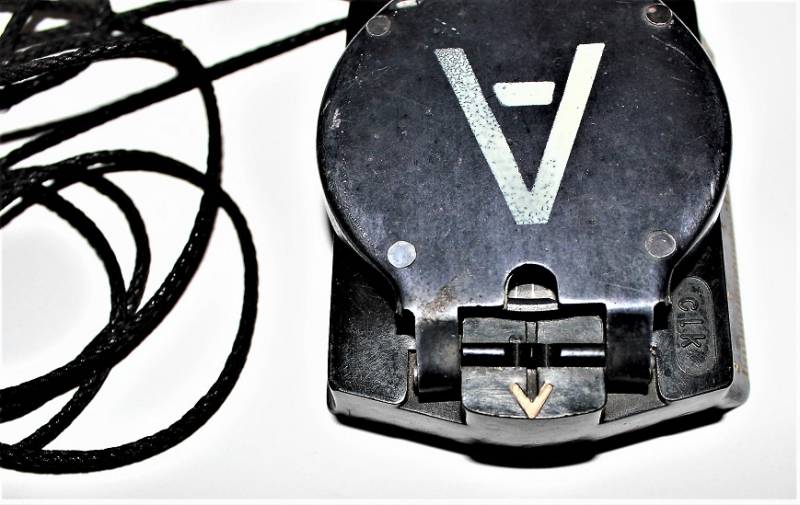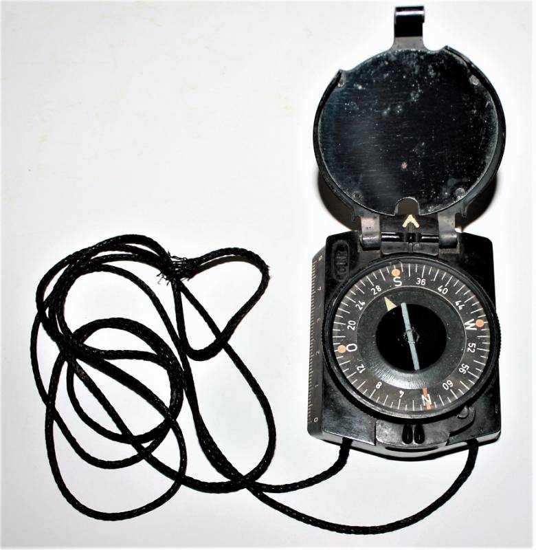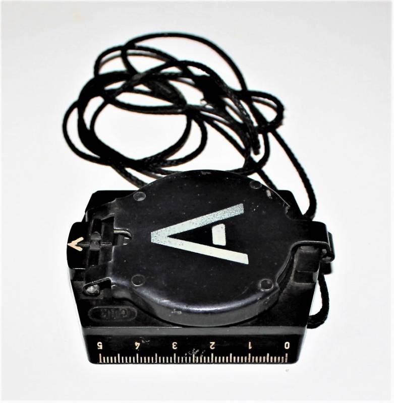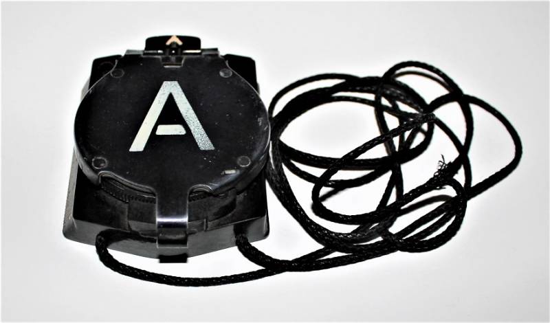 Bussola in bakelite in dotazione WH-SS-LW in ottime condizioni, leggerissimi segni del tempo e dellŽuso, non restaurata o riparata e perfettamente funzionante, con "A" a vernice bianca a mascherina per riferimento dellŽartiglieria. Marcata con codice fabbricante. Originale 100% WWII periodo.