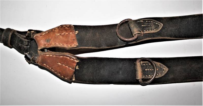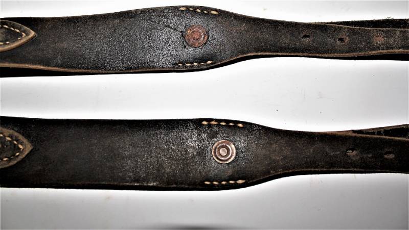 Spallacci a "Y" regolamentari in dotazione a tutti i reparti WH-SS-LW, condizioni usato, ma buona conservazione, pelle sana non lesionata, completi in tutte le sue parti, marcati con codice fabbricante e data 1940. Originale 100% WWII periodo.