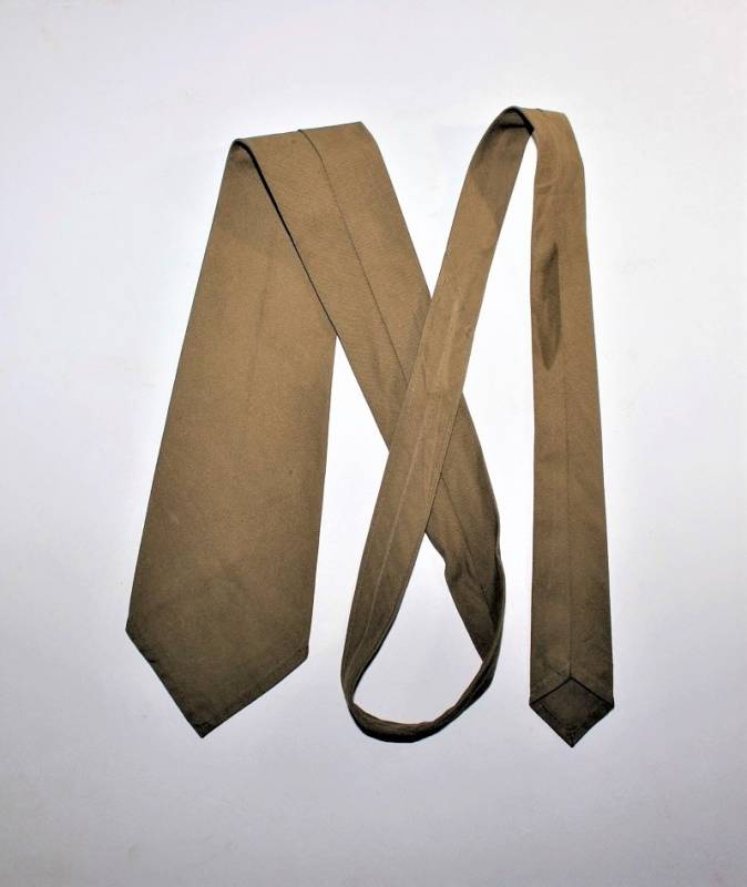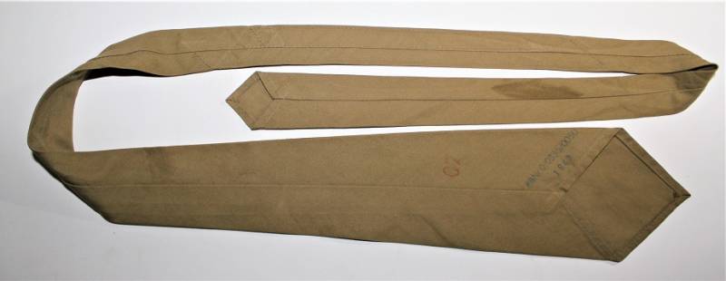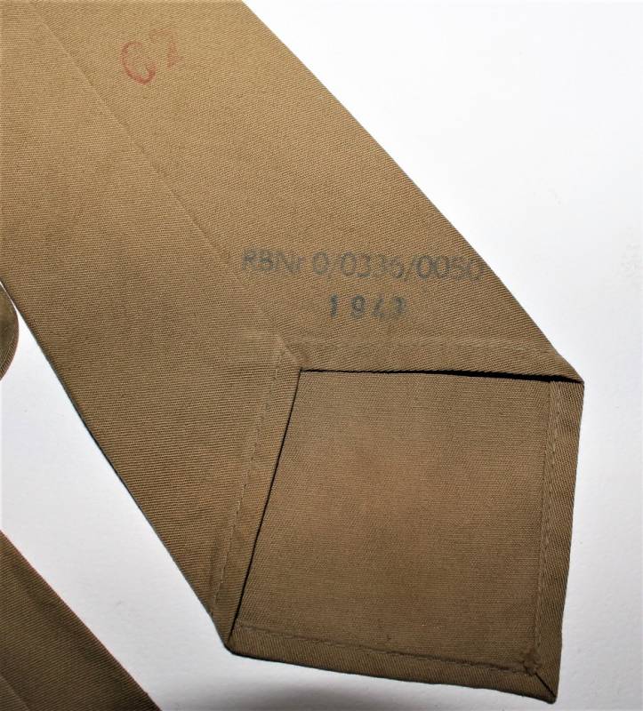 Cravatta tropicale DAK in condizioni ottime quasi pari al nuovo, nata in tela di cotone in tipica colorazione giallo DAK, marcata RBN n.... e data 1943. Originale 100% WWII periodo.