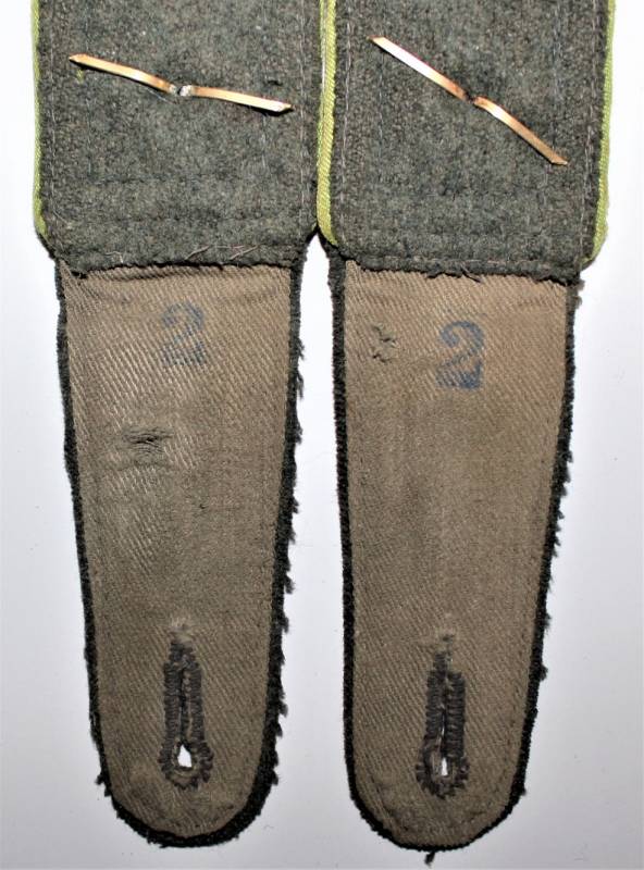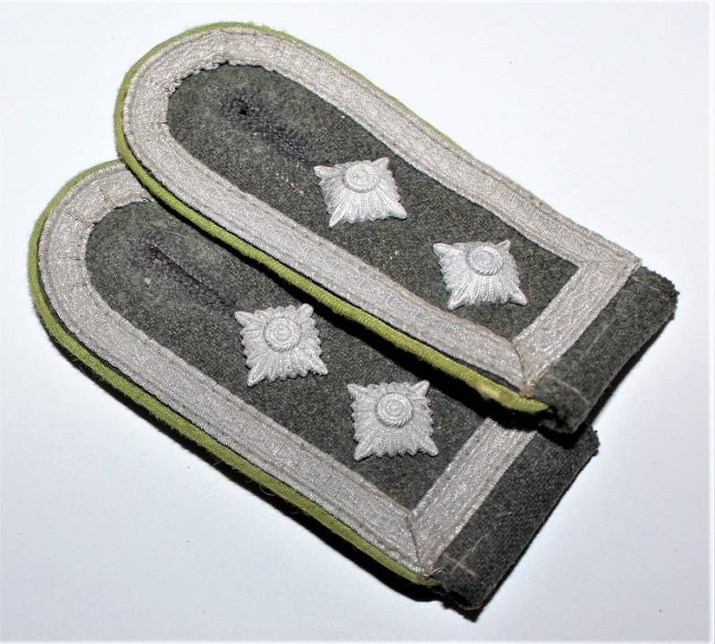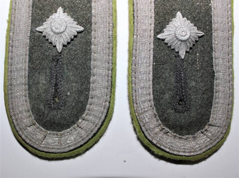 Coppia di spalline M40 da Sottufficiale della WH waffenfarbe verde mela Panzergranadier, condizioni ottime, con leggeri segni dŽusura e del tempo, cuciture perfette. Originale 100% WWII periodo.