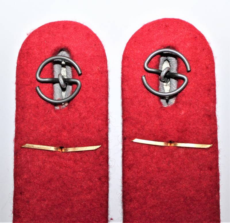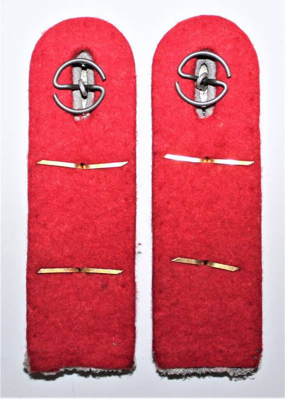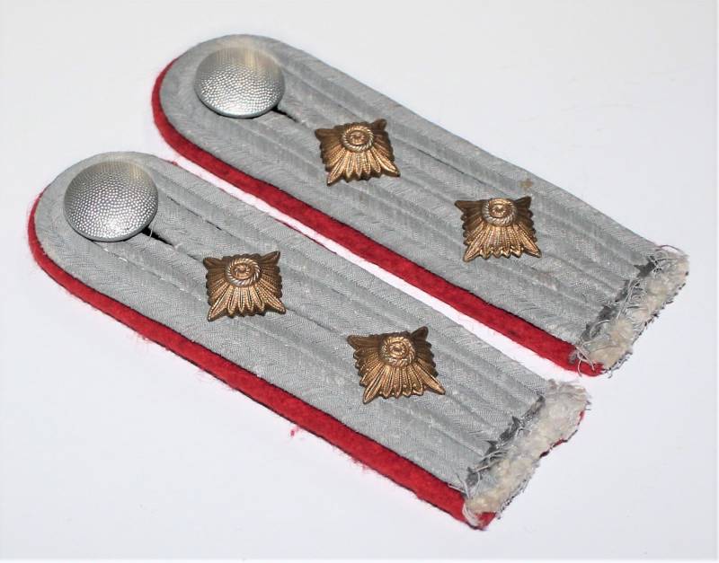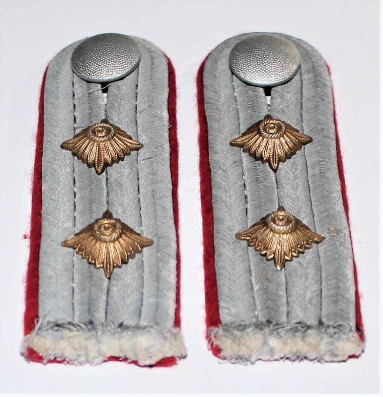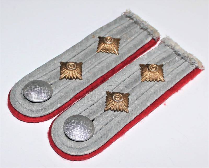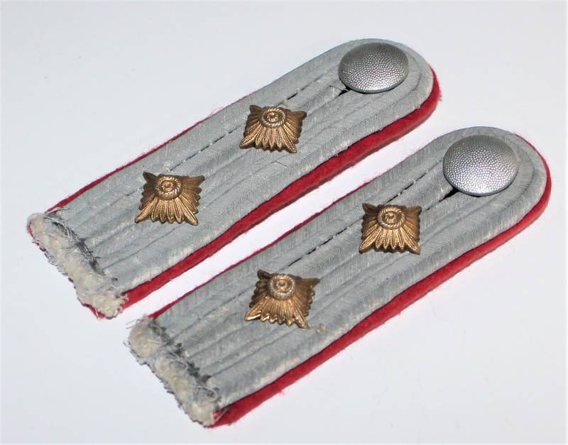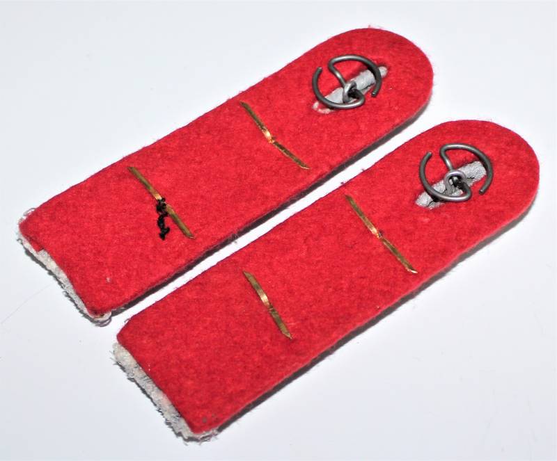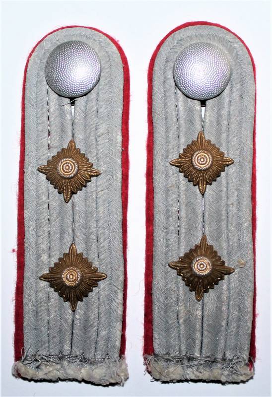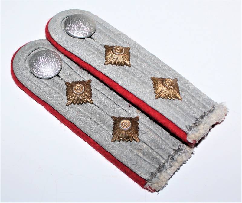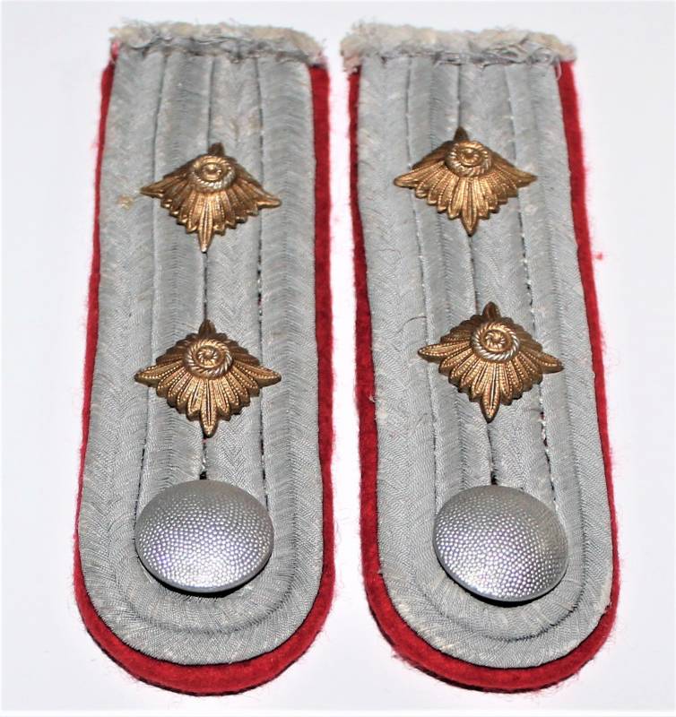 Spalline da Ufficiale WH nel grado di Capitano dellŽartiglieria in ottime condizioni, quasi pari al nuovo mai usate, complete di bottoni da Ufficiale diametro 17, waffenfarbe rosso. Originali 100% WWII periodo.