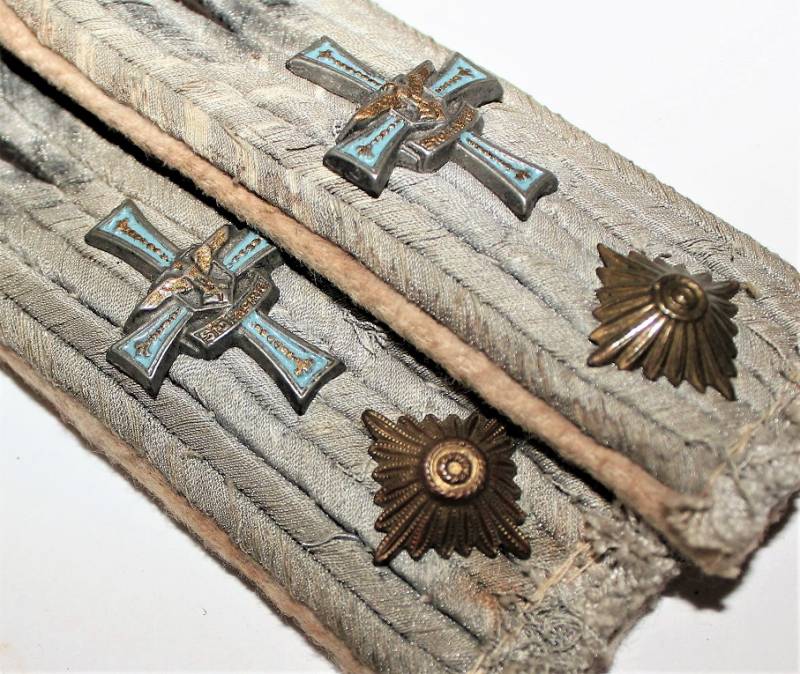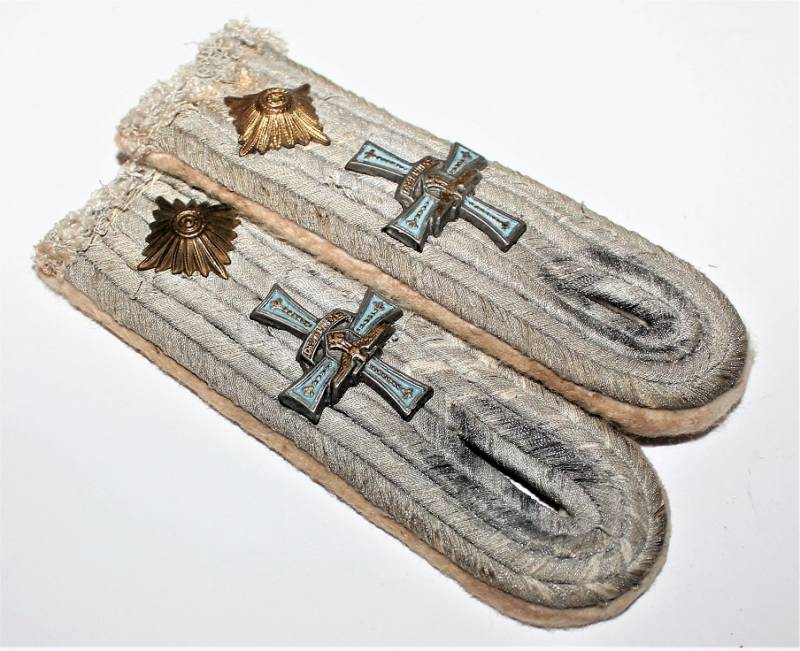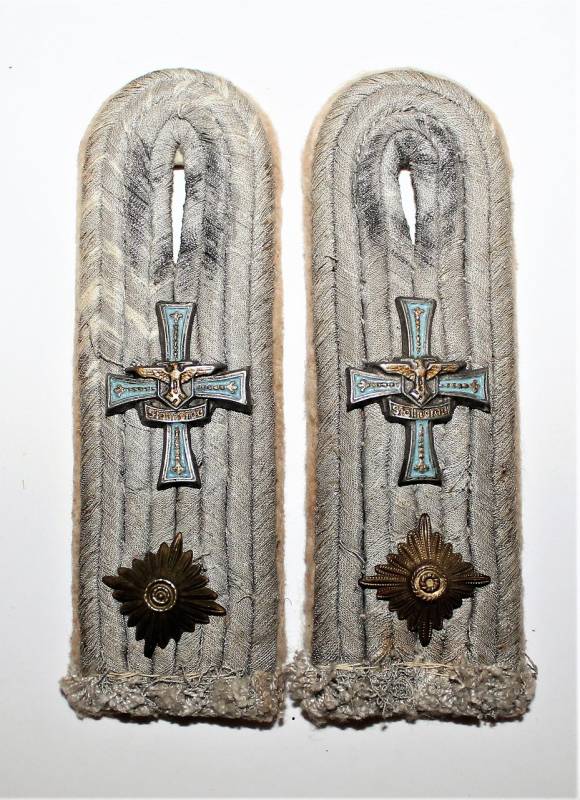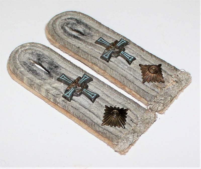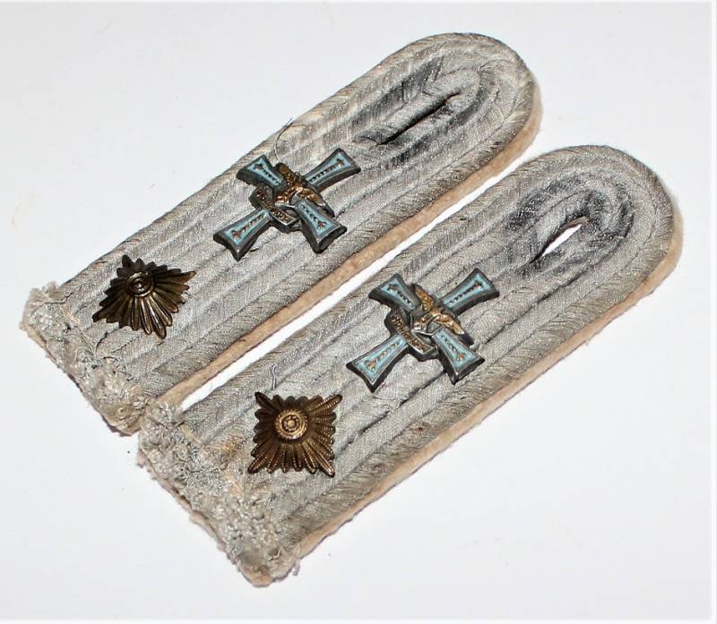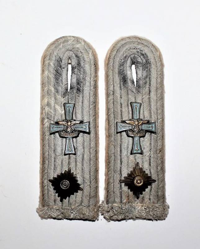 Rare spalline da Ufficiale della WH nel grado di Tenente con monogrammi della Croce di Stalingrado, waffenfarbe bianco fanteria, condizioni buone rimosse da giacca ma non accorciate, non restaurate o riparate e non lesionate, solo con patina del tempo e dellŽuso. Originali 100% WWII periodo.