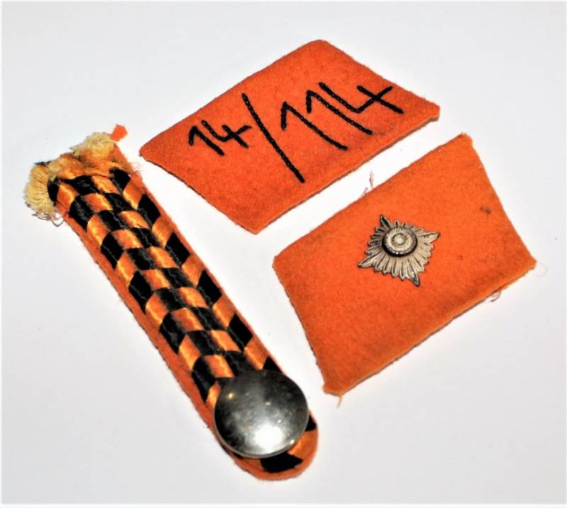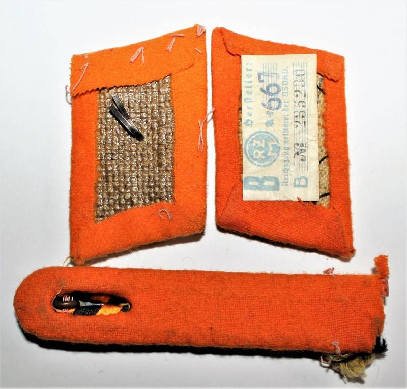 Set di mostreggiatura spallina e mostrine NSDAP SA Standarde 10/114 in ottime condizioni mai montate su giacca, solo con leggera patina del tempo, le mostrine sono complete del suo cartellino RZM con numeri di lotto.
