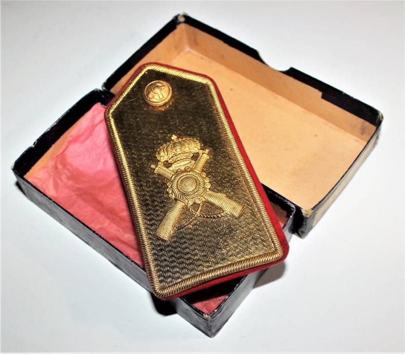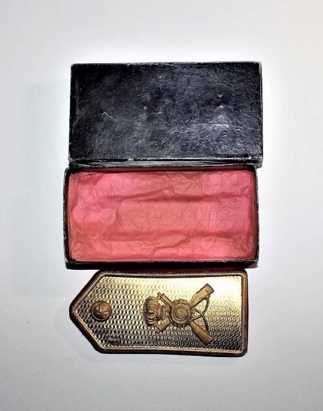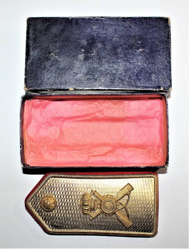 Bellissima controspallina da Ufficiale Fanteria per uniforme M34 Regio Esercito completa della sua scatola di cartone, condizoni perfette pari al nuovo.