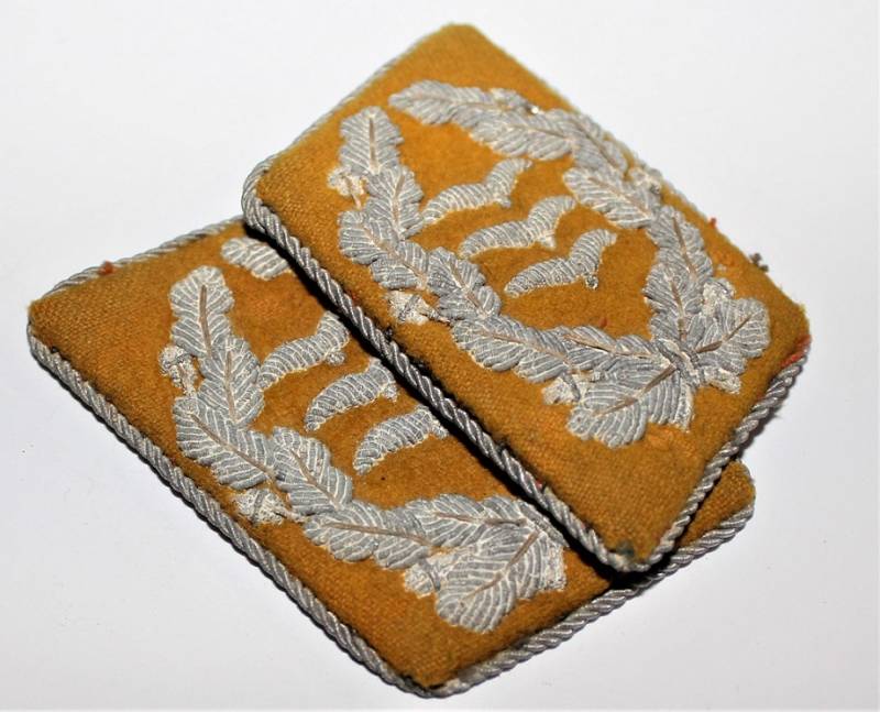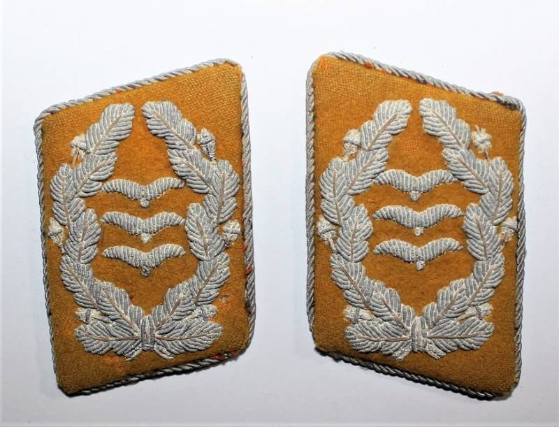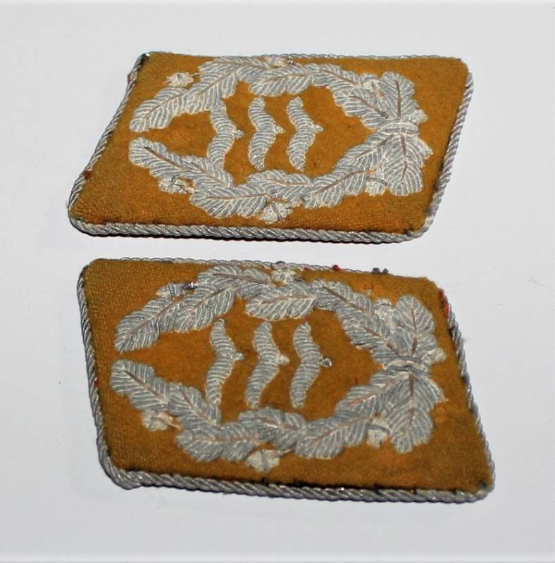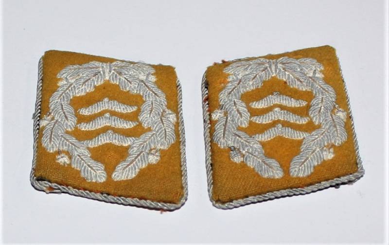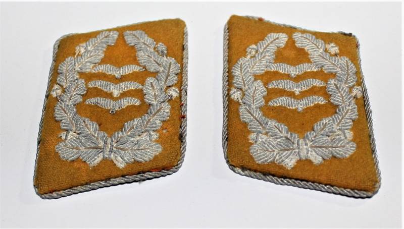 Coppia di mostrine da Ufficiale della LW waffenfarbe giallo Paracadutisti o Piloti, condizioni buone, con leggera ossidazione della canottiglia. Originale 100% WWII periodo.