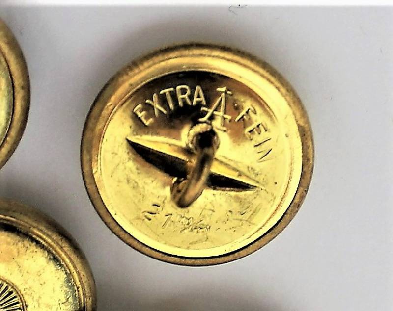 Set di 8 bottoni in oro da Generale in ottime condizioni, 4 marcati ASMANN e 4 non marcati, diametro 21mm. Originale 100% WWII periodo.
