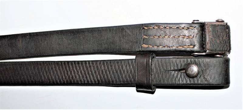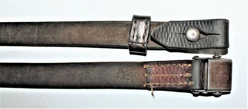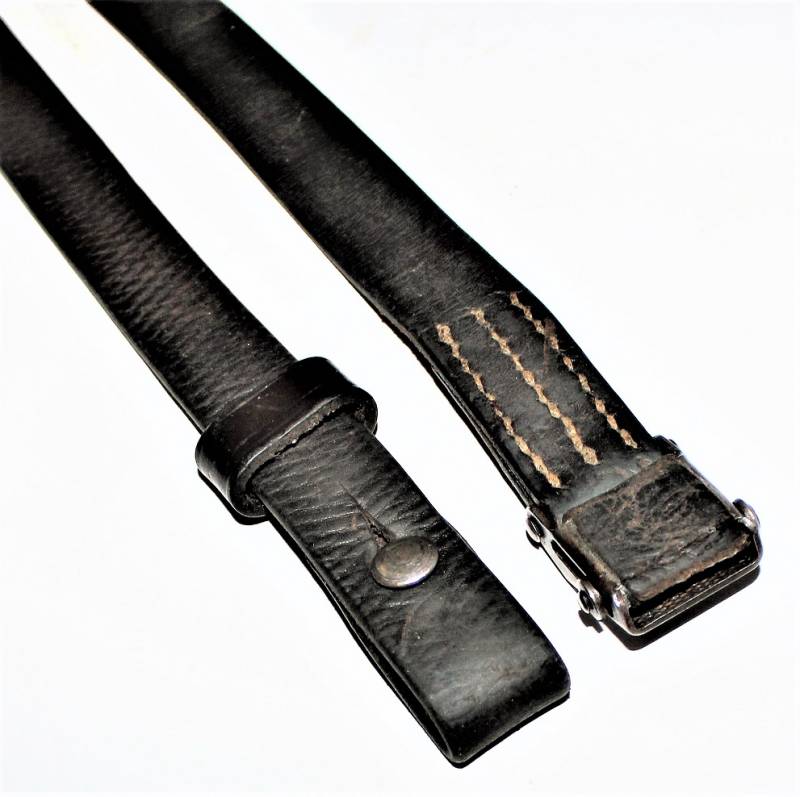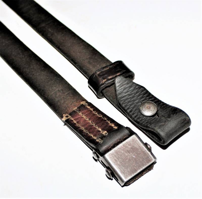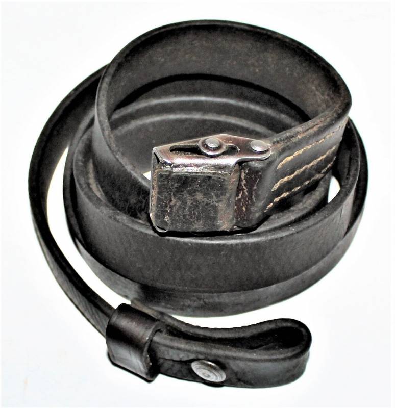 Cinghia di trasporto per pistola mitragliatrice MP38-40 condizioni belle, usata poco, è ancora visibile in parte la colorazione marrone e la zigrinatura, completa in ogni sua parte, solo con patina del tempo e dellŽuso, pelle ancora morbida, cuciture perfette, marcata con codice fabbricante e data 1942. Originale 100% WWII periodo.