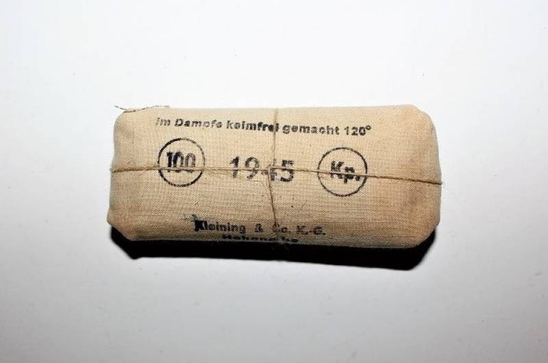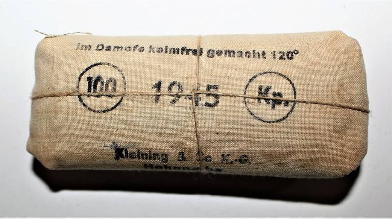 Pacchetto di medicazione individuale come nuovo mai usato in perfette condizioni e marcato. Originale 100% WWII periodo.
