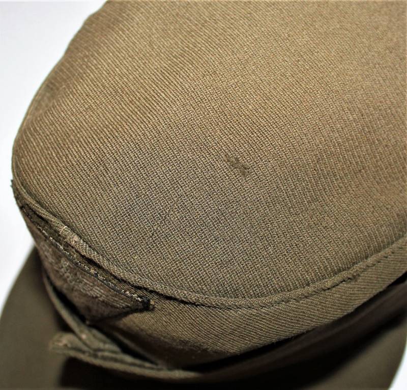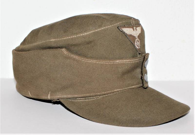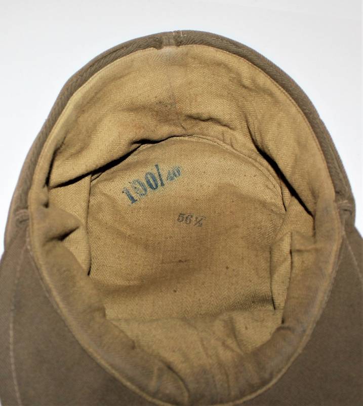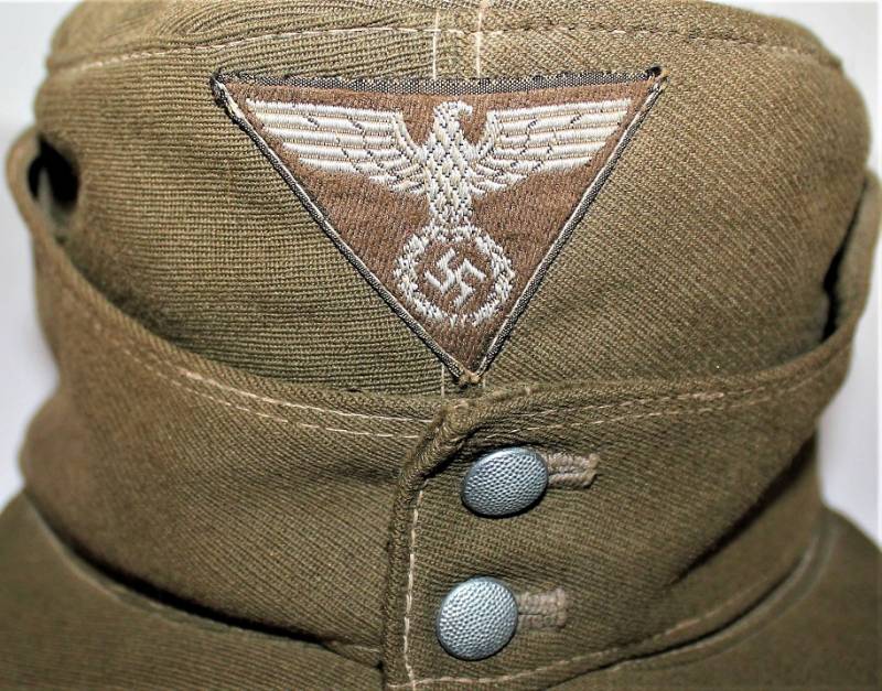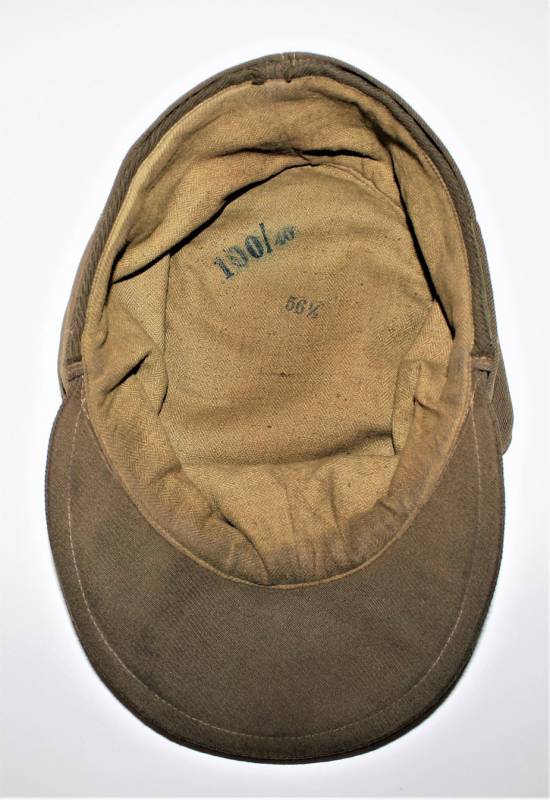 Berretto M43 da truppa delle SA nato in gabardina in colorazione beige, condizioni molto buone, completo in ogni sua parte, non restaurato o riparato, senza buchi o strappi e cuciture perfette, fregio regolamentare triangolare delle SA montato in epoca, il tutto con patina del tempo e dellŽuso. Marcato internamente con taglia 56,5 e probabili numeri di lotto. Originale 100% WWII periodo.