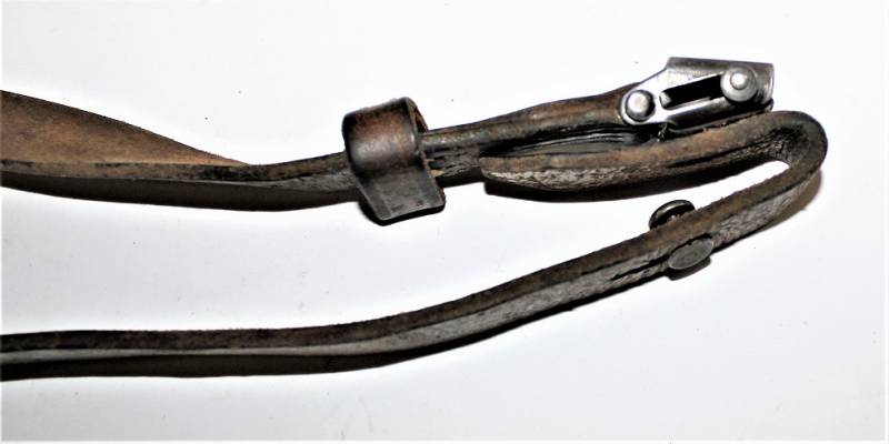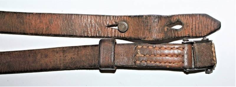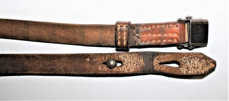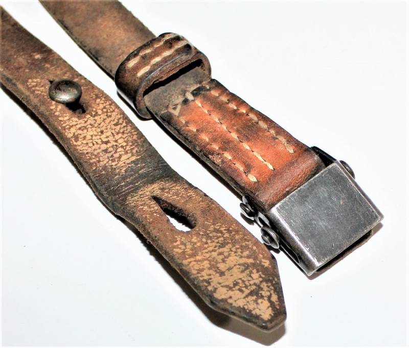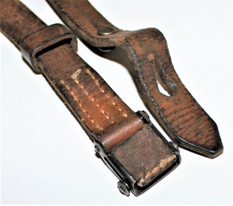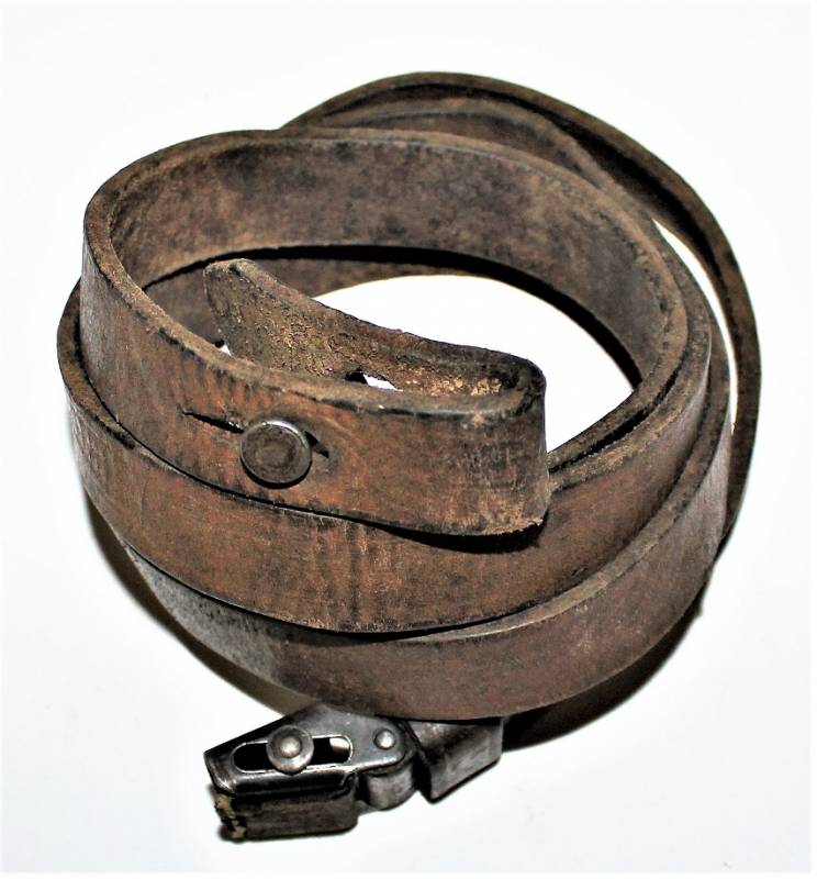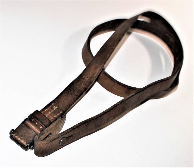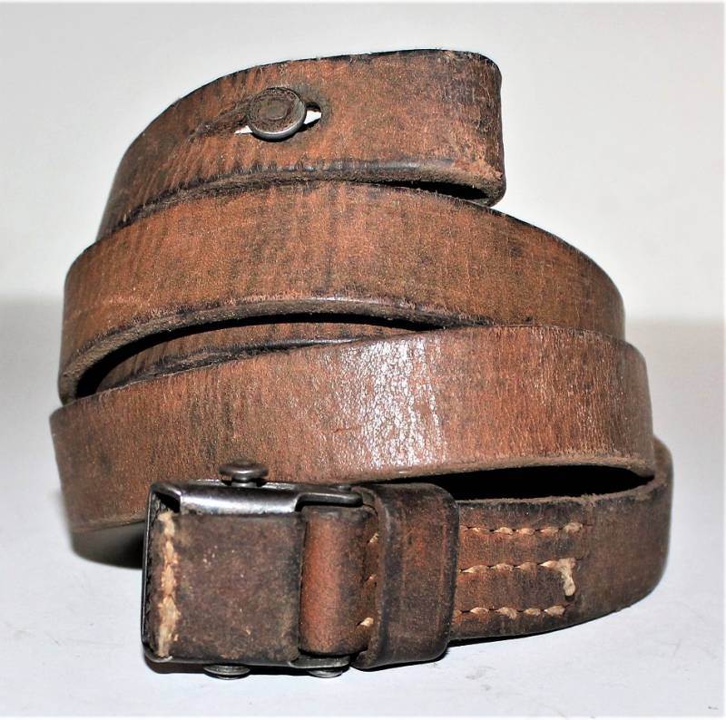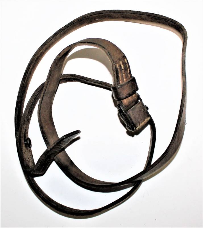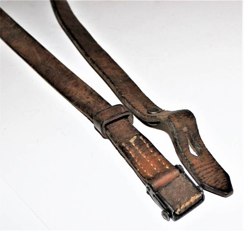 Cinghia di trasporto per pistola mitragliatrice MP38-40 condizioni belle, non troppo usata, ancora visibile la colorazione marrone, completa in ogni sua parte, non restaurata o riparata, solo con patina del tempo e dellŽuso, pelle ancora morbida e non lesionata, cuciture perfette, non marcata. Originale 100% WWII periodo.
