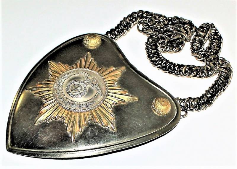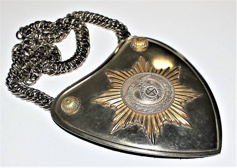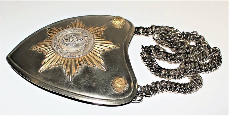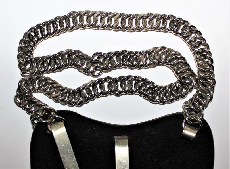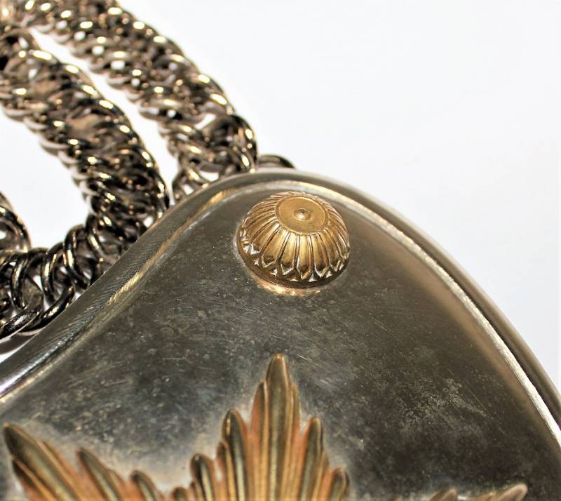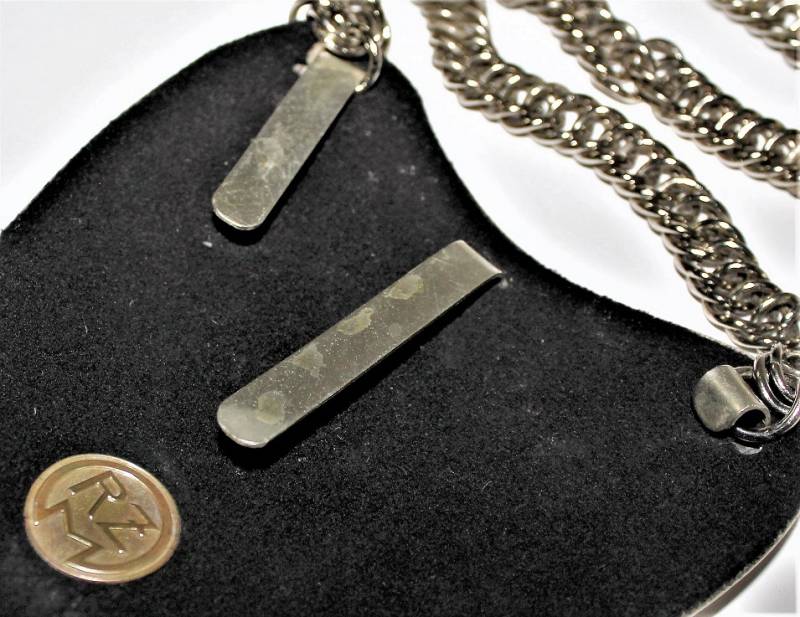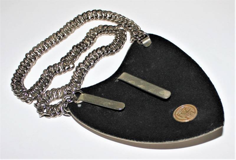 Bellissima Gorgiera delle SA pettorale per porta bandiera in ottime condizioni solo con leggerissima patina del tempo e dellŽuso, completa in ogni sua parte, non restaurata o riparata, sul retro rivestita con panno nero e distintivo RZM. Originale 100% WWII periodo.